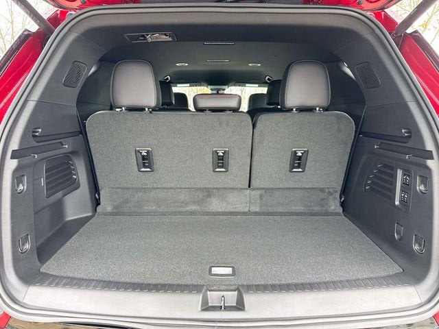 12 Speakers, 3rd row seats: split-bench, 4-Wheel Disc Brakes, 6-Way Power Front Passenger Seat Adjuster, 8-Way Power Driver Seat Adjuster, ABS brakes, Air Conditioning, Alloy wheels, AM/FM radio: SiriusXM with 360L, Apple CarPlay/Android Auto, Auto High-beam Headlights, Auto tilt-away steering wheel, Auto-dimming door mirrors, Automatic temperature control, Bose Premium 12-Speaker Audio System Feature, Brake assist, Bumpers: body-color, Child-Seat-Sensing Airbag, Compass, Delay-off headlights, Driver 4-Way Power Lumbar Seat Adjuster, Driver door bin, Driver vanity mirror, Dual front impact airbags, Dual front side impact airbags, Electronic Stability Control, Emergency communication system: OnStar, Exterior Parking Camera Rear, Four wheel independent suspension, Front anti-roll bar, Front Bucket Seats, Front Center Armrest, Front dual zone A/C, Front Passenger 4-Way Power Lumbar Seat Adjuster, Front reading lights, Fully automatic headlights, Garage door transmitter, Heated door mirrors, Heated Driver and Front Passenger Seats, Heated front seats, Heated rear seats, Heated steering wheel, Illuminated entry, Low tire pressure warning, Memory seat, Navigation System, Occupant sensing airbag, Outside temperature display, Overhead airbag, Overhead console, Panic alarm, Passenger door bin, Passenger vanity mirror, Perforated Leather-Appointed Seat Trim, Power door mirrors, Power driver seat, Power Liftgate, Power passenger seat, Power steering, Power windows, Preferred Equipment Group 1RS, Radio data system, Radio: : Audio System w/17.7 Diagonal Display, Rain sensing wipers, Rear air conditioning, Rear anti-roll bar, Rear reading lights, Rear window defroster, Rear window wiper, Remote keyless entry, Security system, SiriusXM with 360L Trial Subscription, Speed control, Speed-sensing steering, Spoiler, Sport steering wheel, Steering wheel memory, Steering wheel mounted audio controls, Tachometer, Telescoping steering wheel, Tilt steering wheel, Traction control, Trip computer, Turn signal indicator mirrors, Variably intermittent wipers, Ventilated Driver and Front Passenger Seats, Ventilated front seats, Voltmeter, Wheels: 22 High Gloss Black Painted Aluminum.