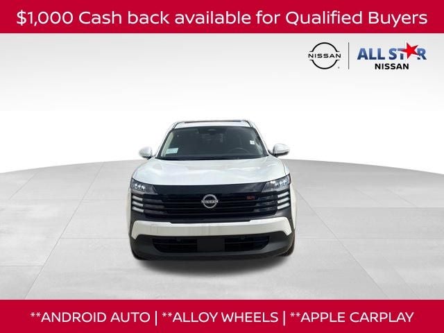 **ANDROID AUTO, **ALLOY WHEELS, **APPLE CARPLAY, **Bluetooth®, **BACK UP CAMERA, **BLIND SPOT MONITORS, **CROSS TRAFFIC ALERT, **CRUISE CONTROL, **HEATED SEATS, **LANE DEPARTURE WARNING, **SUNROOF / MOONROOF, **REAR SONAR, **FORWARD COLLISION WARNING, Auto High-beam Headlights, Automatic temperature control, Bose 10 -Speaker Audio, Driver Seat-Mounted Supplemental Air Bag, Heated Front Seats, Heated Mirrors, Heated Steering Wheel, Panic alarm, Panoramic Moonroof, Rain Sensing Wipers, Rear Floor Heater Ducts, Remote Engine Start, Remote keyless entry, Speed control, SR Premium Package, Steering wheel mounted audio controls, Wireless Apple CarPlay/Wireless Android Auto, 17 Alloy Wheels, 4-Wheel Disc Brakes, 6 Speakers, ABS brakes, Air Conditioning, Alloy wheels, Brake assist, Bumpers: body-color, Delay-off headlights, Driver door bin, Driver vanity mirror, Dual front impact airbags, Dual front side impact airbags, Electronic Stability Control, Front anti-roll bar, Front Bucket Seats, Front Center Armrest, Front reading lights, Front wheel independent suspension, Fully automatic headlights, Illuminated entry, Knee airbag, Leather Shift Knob, Leather steering wheel, Low tire pressure warning, Occupant sensing airbag, Outside temperature display, Overhead airbag, Overhead console, Passenger door bin, Passenger vanity mirror, Power door mirrors, Power steering, Power windows, Radio data system, Radio: AM/FM Audio System, Rear anti-roll bar, Rear reading lights, Rear seat center armrest, Rear side impact airbag, Rear window defroster, Rear window wiper, Security system, Speed-sensing steering, Split folding rear seat, Spoiler, Sport steering wheel, Tachometer, Telescoping steering wheel, Tilt steering wheel, Traction control, Trip computer, Turn signal indicator mirrors, Variably intermittent wipers, Auto High-beam Headlights, Automatic temperature control, Bose 10 -Speaker Audio, Driver Seat-Mounted Supplemental Air Bag, Heated Front Seats, Heated Mirrors, Heated Steering Wheel, Panic alarm, Panoramic Moonroof, Rain Sensing Wipers, Rear Floor Heater Ducts, Remote Engine Start, Remote keyless entry, Speed control, SR Premium Package, Steering wheel mounted audio controls, Wireless Apple CarPlay/Wireless Android Auto. Aspen White Tricoat 2025 Nissan Kicks SR FWD CVT with Xtronic 2.0L DOHC