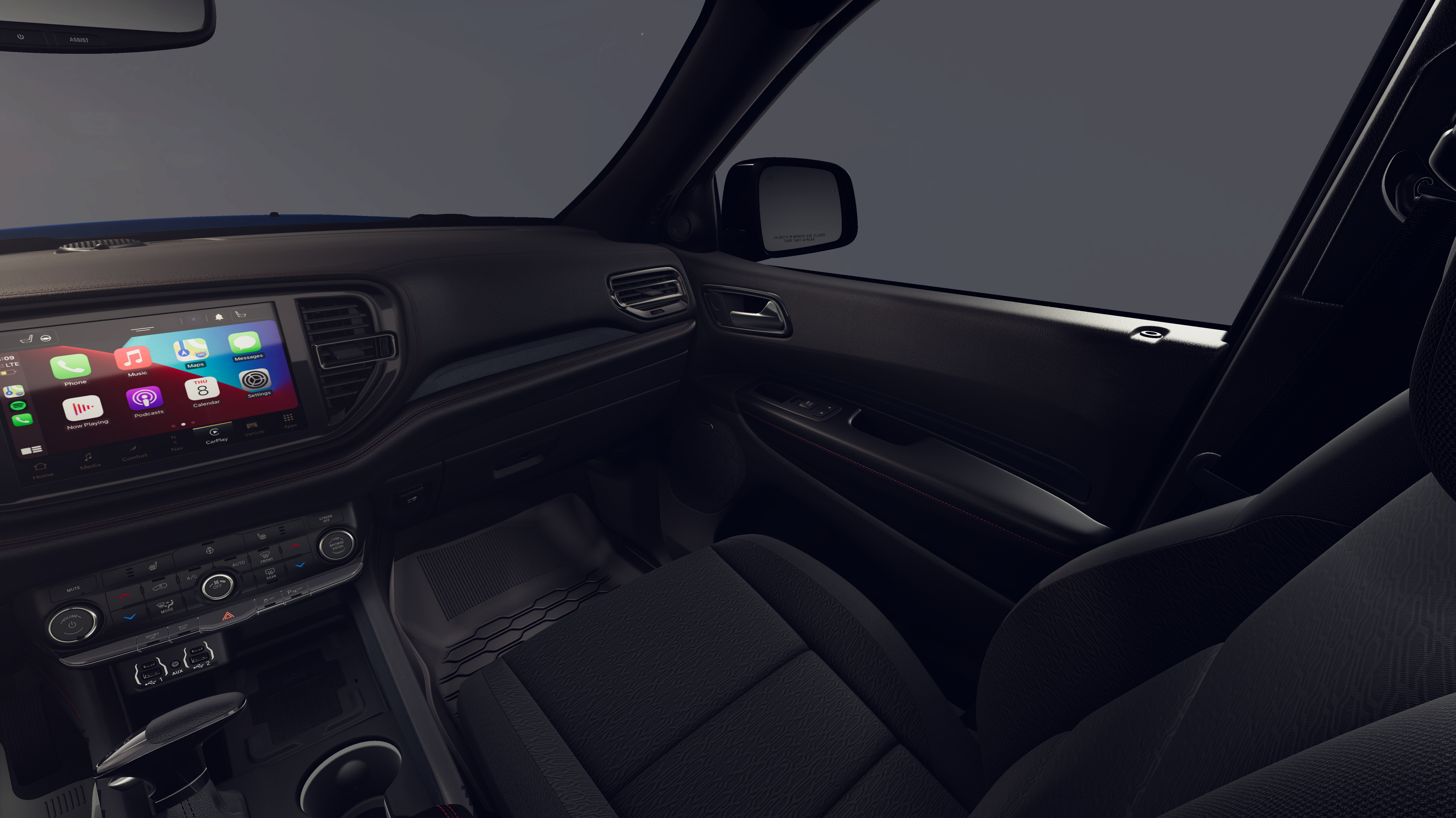 This vehicle comes with the following features and options:MOPAR All Weather Package (Cargo Net, MOPAR Front and Rear Door Entry Guards, and MOPAR Slush Mats), Quick Order Package 22S GT, AWD, 3.09 Rear Axle Ratio, 3rd row seats: split-bench, 4-Wheel Disc Brakes, 9 Speakers, ABS brakes, Air Conditioning, Alloy wheels, AM/FM radio: SiriusXM w/360L, Apple CarPlay/Android Auto, Auto-dimming Rear-View mirror, Auto-leveling suspension, Automatic temperature control, Brake assist, Bumpers: body-color, Cloth Bucket Seats with Shift Insert, Compass, Delay-off headlights, Driver door bin, Driver vanity mirror, Dual front impact airbags, Dual front side impact airbags, Electronic Stability Control, Emergency communication system: Dodge Connect, Exterior Mirrors with Heating Element, Four wheel independent suspension, Front anti-roll bar, Front Bucket Seats, Front Center Armrest w/Storage, Front dual zone A/C, Front reading lights, Fully automatic headlights, Garage door transmitter, Gloss Black Exterior Mirrors, Heated door mirrors, Heated front seats, Heated steering wheel, Illuminated entry, Knee airbag, Leather steering wheel, Low tire pressure warning, MyFlexCare Service Plan, Navigation System, Occupant sensing airbag, Outside temperature display, Overhead airbag, Overhead console, Panic alarm, ParkView Rear Back-Up Camera, Passenger door bin, Passenger vanity mirror, Power door mirrors, Power driver seat, Power Liftgate, Power steering, Power windows, Radio data system, Radio: Uconnect 5 Nav with 10.1 Display, Rain sensing wipers, Rear air conditioning, Rear anti-roll bar, Rear Load Leveling Suspension, Rear reading lights, Rear seat center armrest, Rear window defroster, Rear window wiper, Red Accent Stitching, Remote keyless entry, Security system, Speed control, Speed-sensing steering, Speed-Sensitive Wipers, Split folding rear seat, Spoiler, Sport steering wheel, Steering wheel mounted audio controls, Tachometer, Telescoping steering wheel, Tilt steering wheel, Traction control, Trip computer, Variably intermittent wipers, Voltmeter, and Wheels: 20 x 8 Satin Carbon Split 5-Spoke.