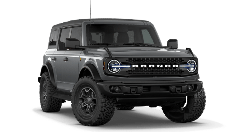WE DELIVER ANYWHERE, 2-Door Intelligent Access with Lock/Unlock, 360-Degree Camera, 4-Wheel Disc Brakes, 4.7 Axle Ratio, 7 Speakers, ABS brakes, Adaptive Cruise Control, Air Conditioning, Alloy wheels, AM/FM radio: SiriusXM with 360L, AM/FM Stereo, Ambient Footwell Lighting, Auto High-Beam Headlamps, Auto High-beam Headlights, Auto-dimming Rear-View mirror, Black Appearance Package, Black Molded-in-Color Door Handles, Black Molded-in-Color Sideview Mirror Caps, Black-Painted Molded-in-Color Grille, BLIS Blind Spot Information System, Brake assist, Compass, Connected Navigation, Delay-off headlights, Driver and Front Passenger Illuminated Sliding Visor Vanity Mirrors, Driver door bin, Driver vanity mirror, Dual front impact airbags, Dual front side impact airbags, Dual Smart Charging USB Ports, Dual-Zone Electronic Automatic Temperature Control, Electronic Stability Control, Emergency communication system: 911 Assist, Equipment Group 334A Lux Package, Evasive Steering Assist, Exterior Parking Camera Rear, Ford Connectivity Package (1-Year Included), Front and Rear Floor Liners Without Carpet Floor Mats, Front anti-roll bar, Front Bucket Seats, Front Center Armrest, Front fog lights, Front Parking Sensors, Front reading lights, Front Row Heated Seats, Front Row Top Panels and Door Storage Bags, Front Stabilizer Disconnect, Front wheel independent suspension, Fully automatic headlights, Hard Top Sound Deadening Headliner, Heated door mirrors, Heated front seats, Heated Steering Wheel, Illuminated entry, Information on Demand Panel, Integrated roll-over protection, Lane-Keeping System, Leather Shift Knob, Leather-Trimmed/Vinyl Bucket Seats, Low tire pressure warning, Marine Grade Vinyl Heated Bucket Seats, Occupant sensing airbag, Outside temperature display, Overhead airbag, Overhead console, Panic alarm, Passenger door bin, Passenger vanity mirror, Power door mirrors, Power steering, Power windows, Pre-Collision Assist with Automatic Emergency Braking, Pro Power Onboard - 400W, Radio data system, Raptor-Style Running Board, Rear Parking Sensors, Rear-View Camera, Rear-Window Defroster and Washer, Remote keyless entry, Security system, Shadow Black Painted Hard Top, Sideview Mirrors, SiriusXM with 360L, Speed control, Split folding rear seat, Steering wheel mounted audio controls, SYNC 4, Tachometer, Telescoping steering wheel, Tilt steering wheel, Traction control, Trip computer, Variably intermittent wipers, Voltmeter, Wheels: 17 Carbonized Gray-Painted Aluminum.