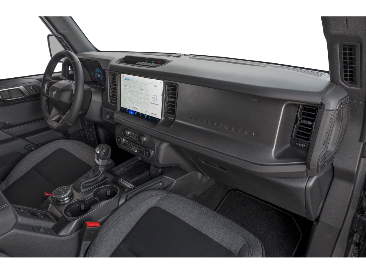 WE DELIVER ANYWHERE, 2-Door Intelligent Access with Lock/Unlock, 4-Wheel Disc Brakes, 4.46 Axle Ratio, 7 Speakers, ABS brakes, Air Conditioning, Alloy wheels, AM/FM radio: SiriusXM with 360L, AM/FM Stereo, Ambient Footwell Lighting, Auto High-Beam Headlamps, Auto High-beam Headlights, BLIS Blind Spot Information System, Brake assist, Carbonized Gray Molded-in-Color Hard Top, Cloth Bucket Seats, Compass, Connected Navigation, Delay-off headlights, Driver and Front Passenger Illuminated Sliding Visor Vanity Mirrors, Driver door bin, Driver vanity mirror, Dual front impact airbags, Dual front side impact airbags, Dual Smart Charging USB Ports, Dual-Zone Electronic Automatic Temperature Control, Electronic Stability Control, Emergency communication system: 911 Assist, Equipment Group 222A Mid Package, Exterior Parking Camera Rear, Ford Connectivity Package (1-Year Included), Front and Rear Floor Liners Without Carpet Floor Mats, Front anti-roll bar, Front Bucket Seats, Front Center Armrest, Front reading lights, Front Row Heated Seats, Front wheel independent suspension, Fully automatic headlights, Hard Top Sound Deadening Headliner, Heated door mirrors, Illuminated entry, Integrated roll-over protection, Lane-Keeping System, Low tire pressure warning, Occupant sensing airbag, Outside temperature display, Overhead airbag, Overhead console, Panic alarm, Passenger door bin, Passenger vanity mirror, Power door mirrors, Power steering, Power windows, Pre-Collision Assist with Automatic Emergency Braking, Pro Power Onboard - 400W, Radio data system, Rear Parking Sensors, Rear-View Camera, Rear-Window Defroster and Washer, Remote keyless entry, Security system, Side Step, SiriusXM with 360L, Speed control, Split folding rear seat, Steering wheel mounted audio controls, SYNC 4, Tachometer, Telescoping steering wheel, Tilt steering wheel, Traction control, Trip computer, Variably intermittent wipers, Wheels: 17 Carbonized Gray-Painted Aluminum.