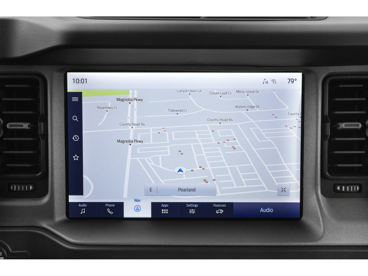 WE DELIVER ANYWHERE, 18 Bright Machined Aluminum Wheels, 3.73 Axle Ratio, 360-Degree Camera, 4-Wheel Disc Brakes, 7 Speakers, ABS brakes, Adaptive Cruise Control, Air Conditioning, Alloy wheels, AM/FM radio: SiriusXM with 360L, AM/FM Stereo, Auto High-beam Headlights, Auto-dimming Rear-View mirror, Automatic temperature control, Body Color Painted Hard Top, Brake assist, Compass, Connected Navigation, Delay-off headlights, Driver door bin, Driver vanity mirror, Dual front impact airbags, Dual front side impact airbags, Electronic Stability Control, Emergency communication system: 911 Assist, Equipment Group 314A Lux Package, Evasive Steering Assist, Exterior Parking Camera Rear, Ford Connectivity Package (1-Year Included), Front and Rear Floor Liners, Front anti-roll bar, Front Bucket Seats, Front Center Armrest, Front dual zone A/C, Front fog lights, Front Parking Sensors, Front reading lights, Front wheel independent suspension, Fully automatic headlights, Hard Top Sound Deadening Headliner, Heated door mirrors, Heated front seats, Heated Leather-Trimmed/Vinyl Bucket Seats, Heated steering wheel, Illuminated entry, Information on Demand Panel, Integrated roll-over protection, Leather Shift Knob, Low tire pressure warning, Navigation system: Connected Navigation, Occupant sensing airbag, Outside temperature display, Overhead airbag, Overhead console, Panic alarm, Passenger door bin, Passenger vanity mirror, Power door mirrors, Power driver seat, Power passenger seat, Power steering, Power windows, Radio data system, Rear seat center armrest, Rear-Window Defroster and Washer, Remote keyless entry, Security system, Sideview Mirrors, SiriusXM with 360L, Speed control, Split folding rear seat, Steering wheel mounted audio controls, SYNC 4, Tachometer, Telescoping steering wheel, Tilt steering wheel, Traction control, Trip computer, Upgraded Carpet Floor Mats, Variably intermittent wipers, Voltmeter.