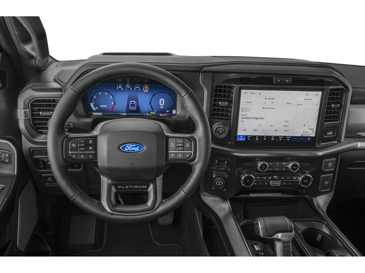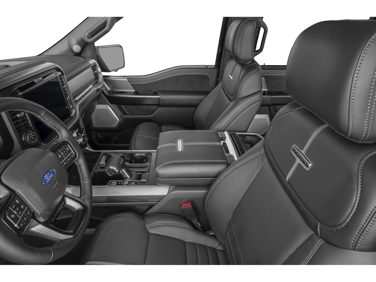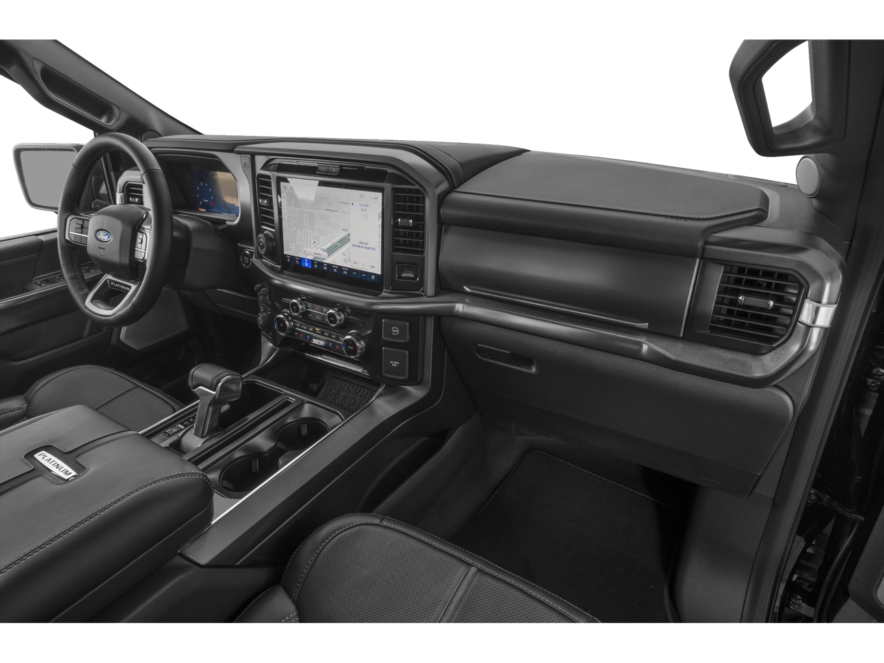 WE DELIVER ANYWHERE, 4WD, 4-Wheel Disc Brakes, 8 Speakers, ABS brakes, Adjustable pedals, Air Conditioning, Alloy wheels, AM/FM radio: SiriusXM with 360L, Auto High-beam Headlights, Auto tilt-away steering wheel, Auto-dimming door mirrors, Auto-dimming Rear-View mirror, Automatic temperature control, Brake assist, Bumpers: body-color, Compass, Delay-off headlights, Driver door bin, Driver vanity mirror, Driver's Side SecuriCode Keyless-Entry Keypad, Dual front impact airbags, Dual front side impact airbags, Electronic Locking with 3.55 Axle Ratio, Electronic Stability Control, Emergency communication system: SYNC 4 911 Assist, Equipment Group 702A High, Ford Connectivity Package (1-Year Included), Front anti-roll bar, Front Bucket Seats, Front Center Armrest, Front dual zone A/C, Front fog lights, Front reading lights, Front wheel independent suspension, Fully automatic headlights, Garage door transmitter, GVWR: 7,400 lbs Payload Package, Heated door mirrors, Heated front seats, Heated rear seats, Heated steering wheel, Illuminated entry, Internet access capable: 5G Modem - Ford Connectivity Package, Leather steering wheel, Low tire pressure warning, Memory seat, Navigation system: Connected Navigation, Occupant sensing airbag, Outside temperature display, Overhead airbag, Overhead console, Panic alarm, Passenger door bin, Passenger vanity mirror, Pedal memory, Platinum Satin Appearance Package, Power door mirrors, Power driver seat, Power passenger seat, Power steering, Power windows, Power-Deployable Running Boards, Pro Access Tailgate, Radio data system, Radio: B&O Sound System by Bang and Olufsen, Radio: B&O Unleashed Sound System by Bang & Olufsen, Rain sensing wipers, Rear reading lights, Rear seat center armrest, Rear step bumper, Rear window defroster, Remote keyless entry, Satin Single Exhaust, Security system, Speed control, Split folding rear seat, Steering wheel memory, Steering wheel mounted audio controls, SYNC 4 with Enhanced Voice Recognition, Tachometer, Telescoping steering wheel, Tilt steering wheel, Traction control, Trip computer, Turn signal indicator mirrors, Unique Multi-Contour Leather Bucket Seats, Variably intermittent wipers, Ventilated front seats, Wheel Well Liner, Wheels: 20 Painted Gloss Ebony Black, 4WD.