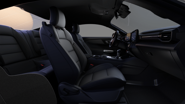 Step inside the cabin and you'll be surrounded by premium amenities, including automatic temperature control, a SYNC 4 infotainment system, and a leather-wrapped steering wheel. The split-folding rear seat and ample cargo space make this Mustang as practical as it is thrilling.