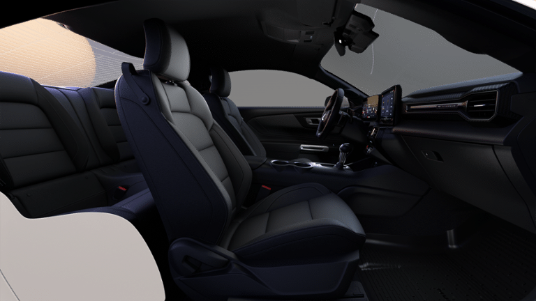 WE DELIVER ANYWHERE, 4-Wheel Disc Brakes, ABS brakes, Active Valve Performance Exhaust, Air Conditioning, Alloy wheels, AM/FM Stereo, Ambient Lighting with MyColor, Auto High-beam Headlights, Automatic temperature control, Black Painted Wedge Decklid Spoiler, Brake assist, Bumpers: body-color, Cloth/Vinyl Heated Bucket Seats, Compass, Delay-off headlights, Driver door bin, Driver vanity mirror, Dual front impact airbags, Dual front side impact airbags, Electronic Stability Control, Emergency communication system: 911 Assist, Equipment Group 301A High Package, Exterior Parking Camera Rear, Four wheel independent suspension, Front anti-roll bar, Front Bucket Seats, Front Center Armrest, Front dual zone A/C, Front reading lights, Fully automatic headlights, Illuminated entry, Knee airbag, Leather Shift Knob, Leather steering wheel, Low tire pressure warning, Occupant sensing airbag, Outside temperature display, Overhead airbag, Overhead console, Panic alarm, Passenger door bin, Passenger vanity mirror, Power door mirrors, Power steering, Power windows, Premium Floor Liners Front and Rear, Radio data system, Rain sensing wipers, Rear anti-roll bar, Rear Parking Sensors, Rear window defroster, Remote keyless entry, SiriusXM with 360L and HD Radio, Speed control, Speed-sensing steering, Speed-Sensitive Wipers, Split folding rear seat, Sport steering wheel, Steering wheel mounted audio controls, SYNC 4, Tachometer, Telescoping steering wheel, Tilt steering wheel, Traction control, Trip computer, Variably intermittent wipers, Voltmeter, Wedge Decklid Spoiler, Wheels: 19 x 8.5 Premier Polished Aluminum, Wheels: 8 x 8.5 Ebony Black Painted Aluminum.