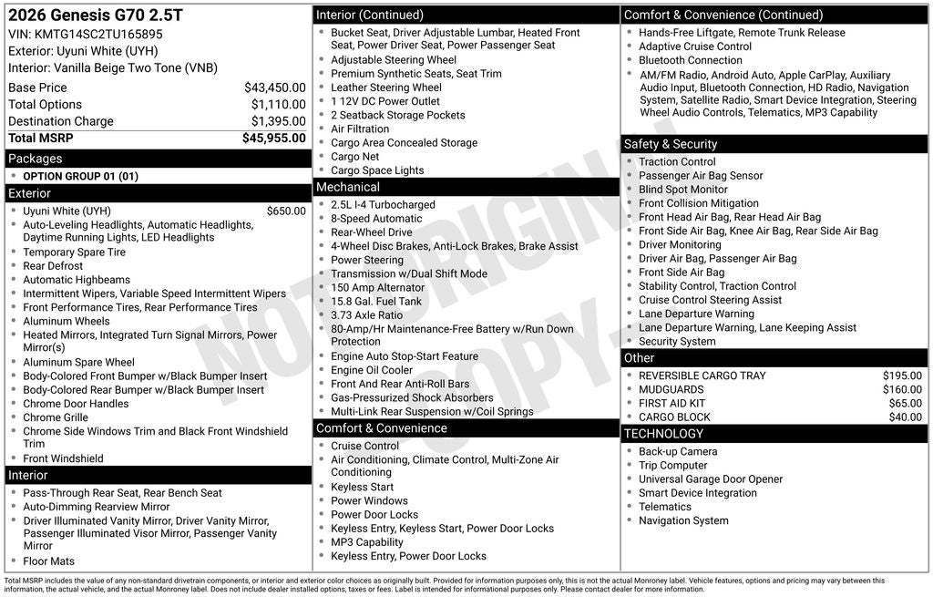 While we make every effort to ensure the data listed here is correct, there may be instances where some of the factory rebates, incentives, options or vehicle features may be listed incorrectly as we get data from multiple data sources. PLEASE MAKE SURE to confirm the details of this vehicle (such as what factory rebates you may or may not qualify for) with the dealer to ensure its accuracy. Dealer cannot be held liable for data that is listed incorrectly.