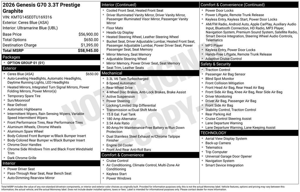 - Vehicle Name: Genesis G70