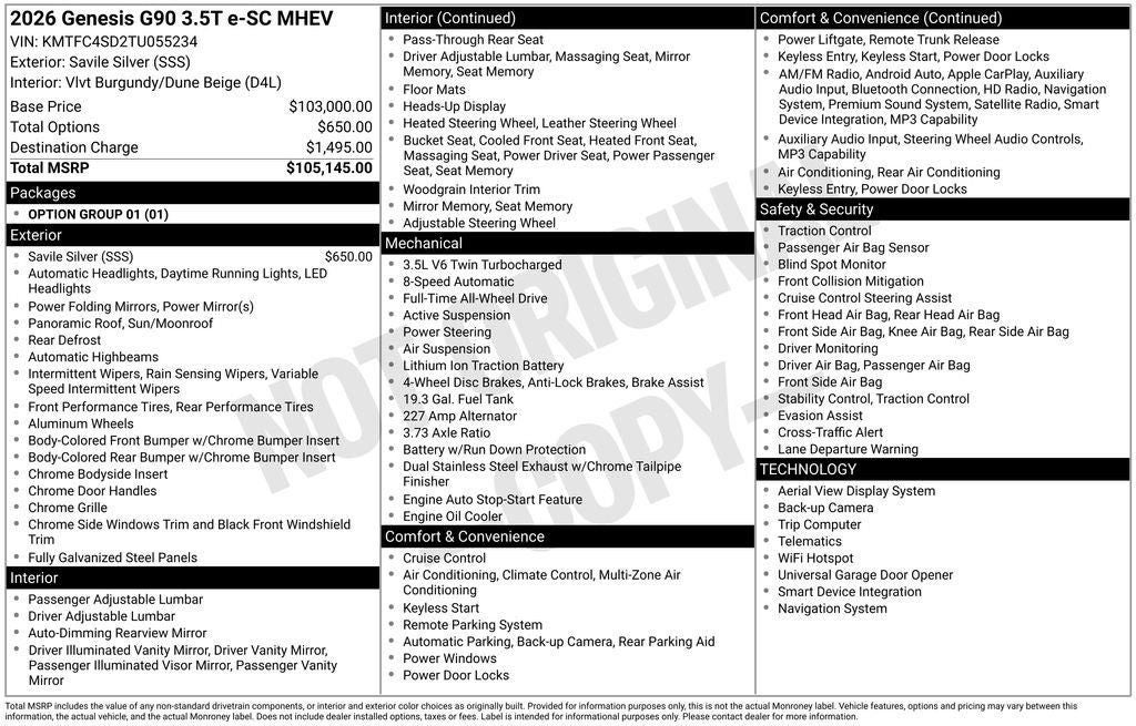 2026 Genesis G90 3.5T e-SC