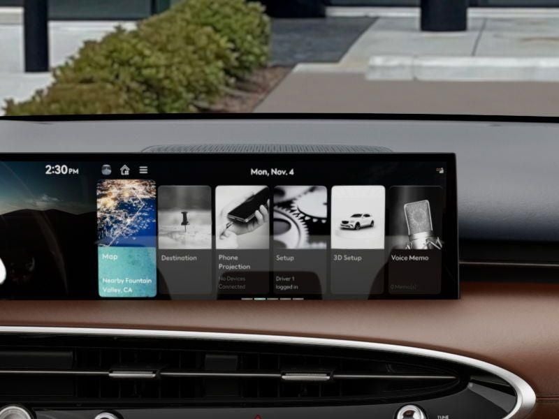 - Radio: 14.5" Navigation System w/AM/FM/HD Radio -inc: SiriusXM radio w/90-day trial subscription (N/A in AK or HI), wireless Android Auto and Apple CarPlay, Genesis Connected Services, Bluetooth® hands-free phone & audio streaming system, Bang & Olufsen sound system w/16 speakers, WiFi hotspot, internal amplifier and USB port