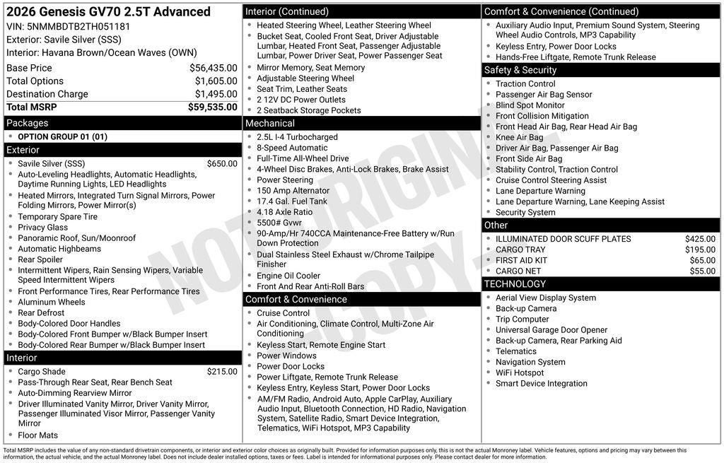 - Vehicle Name: Genesis GV70