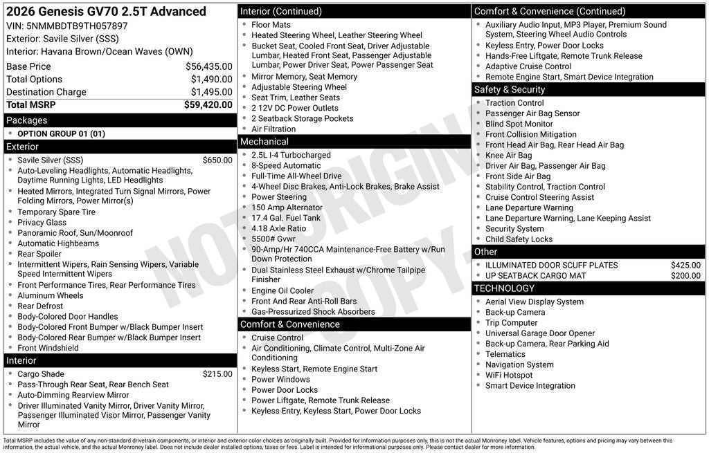 - Vehicle Name: Genesis GV70