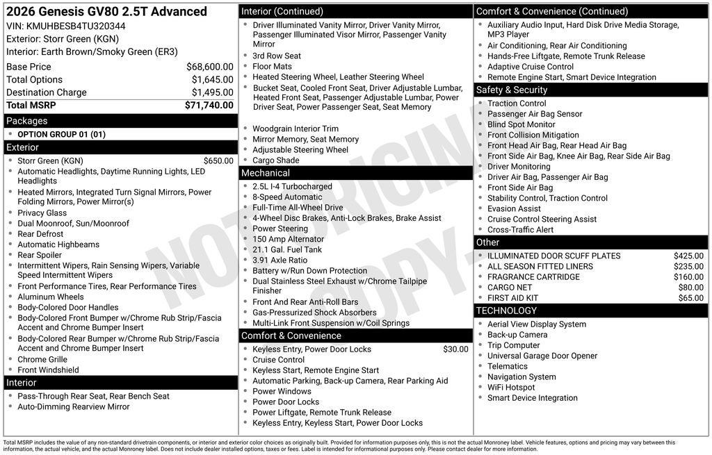 See dealer for details. Tax, tag, title, license, convenience charge ($23) and dealer documentation fee ($425) are extra (unless itemized above).