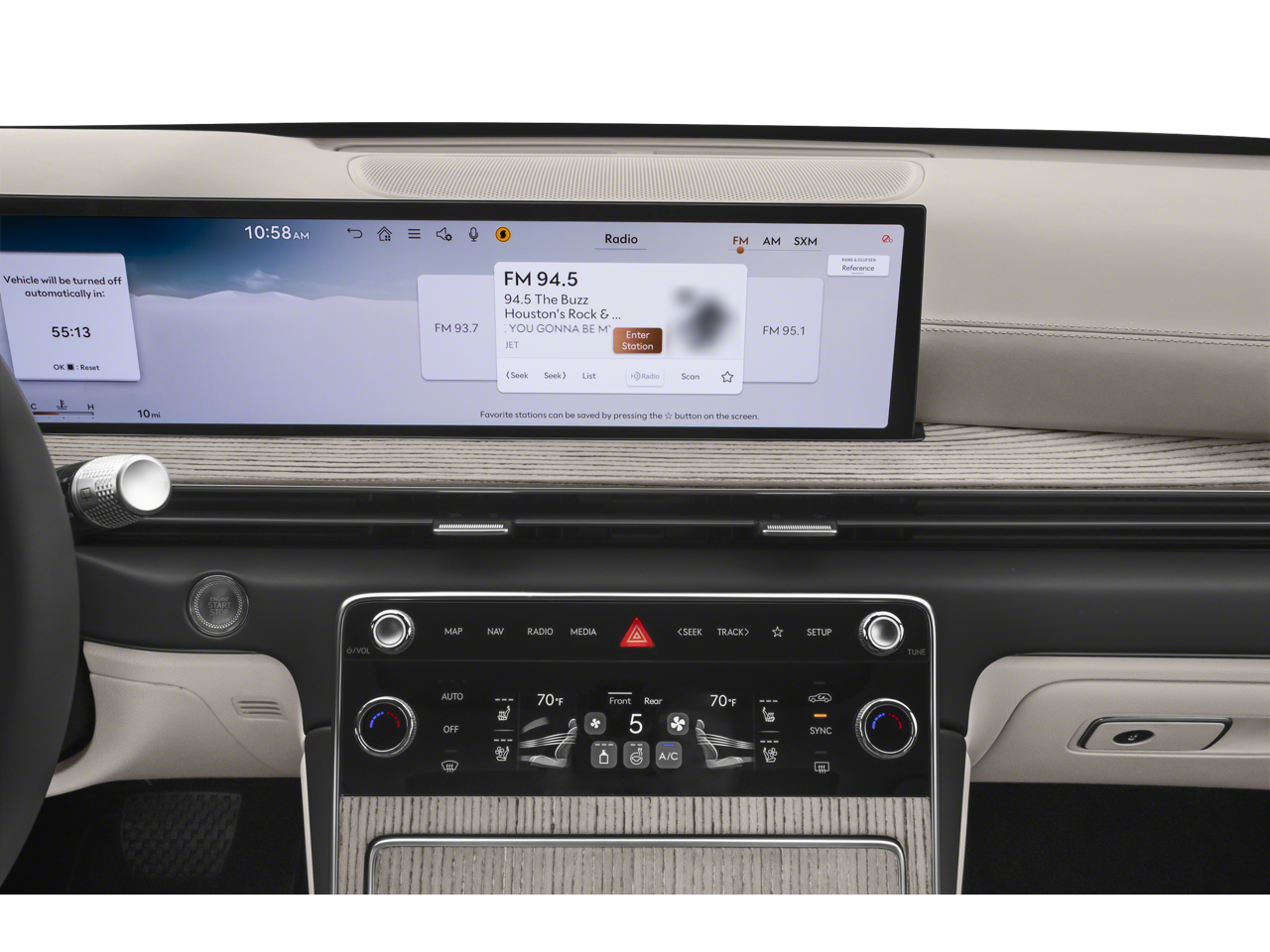 - Radio: AM/FM/HD Radio -inc: premium audio w/12 speakers, 27" integrated OLED instrument cluster and navigation system, SiriusXM Radio w/90-day subscription (not available in AK or HI), cloud connected platform (cloud profiles, connected routing, dynamic voice recognition, OTA updates), wireless Apple CarPlay, wireless Android Auto, Bluetooth® hands-free phone system w/audio streaming, wireless phone charger, Wi-Fi hotspot, steering wheel controls, USB and Genesis Connected Services