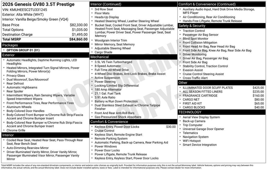 2026 Genesis GV80 3.5T Prestige