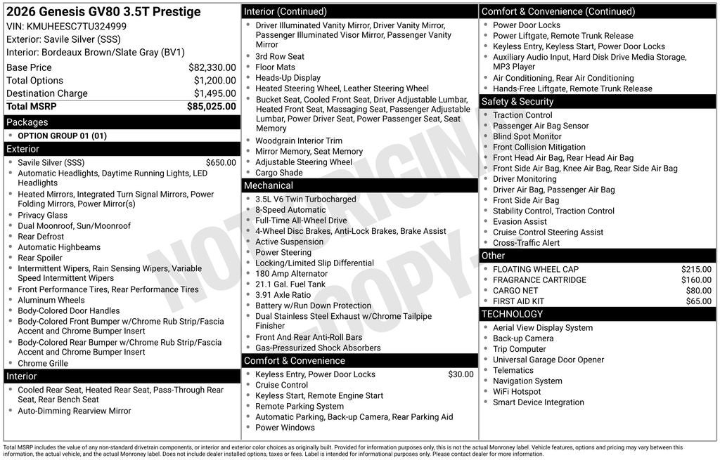 2026 Genesis GV80 3.5T Prestige