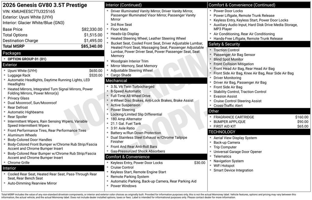 2026 Genesis GV80 3.5T Prestige