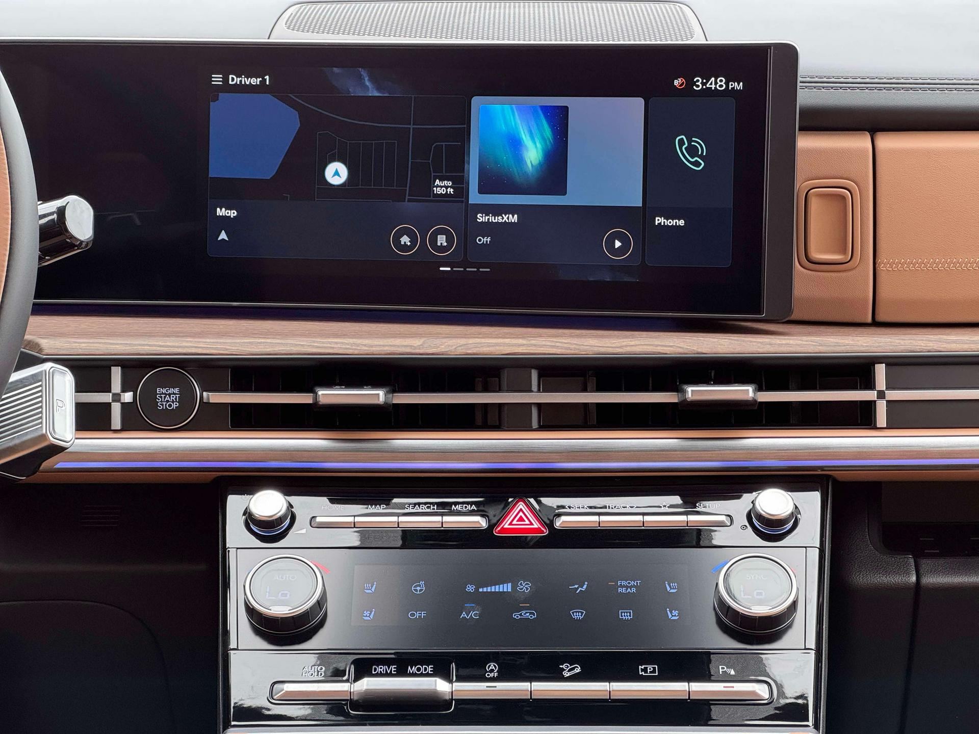 - Radio: AM/FM/HD Bose Premium Audio System -inc: 12 speakers including subwoofer, external amplifier, 12.3" wide touchscreen, Apple CarPlay and Android Auto, Bluetooth® hands-free w/wireless audio streaming, dynamic voice recognition, USB connectivity, SiriusXM, Blue Link+ connected car system, navigation system including traffic flow w/incident data via HD Radio (HERE) and rear seat quiet mode