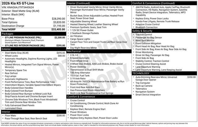 Price excludes tax, title, license, $23 Convenience Charge and $436 dealer administrative fee. 25/36 City/Highway MPG Price includes: $1000 - KFA Dealer Choice Program: $1000 discount and 5.25% APR for 36 months. $30.08 per $1000 financed. Available to well qualified buyers who finance through Kia Finance America. 506. Exp. 03/02/2026
