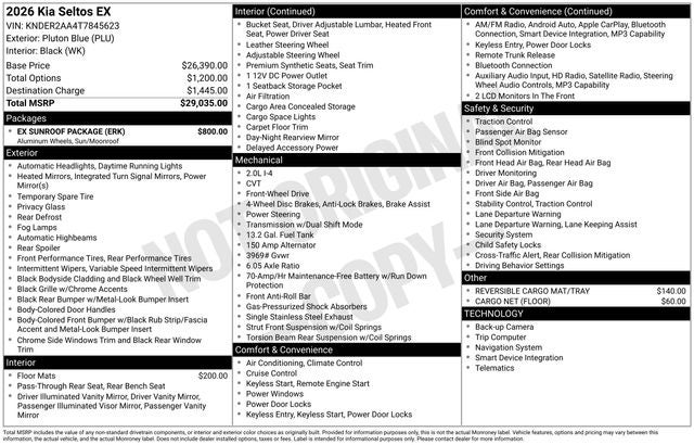 Price excludes tax, title, license, $23 Convenience Charge and $436 dealer administrative fee. 28/34 City/Highway MPG Price includes: $1250 - KFA Dealer Choice Program: $1250 discount and 5.25% APR for 36 months. $30.08 per $1000 financed. Available to well qualified buyers who finance through Kia Finance America. 506. Exp. 02/02/2026