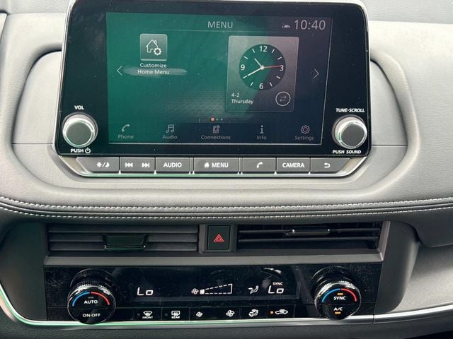 - Radio: AM/FM NissanConnect -inc: 6 speakers plus 2 tweeters, Apple CarPlay, Android Auto, 8" color touch screen display, Bluetooth®, 2 front USB type-C, Wi-Fi hotspot and NissanConnect Services powered by SiriusXM