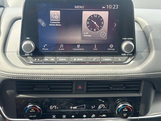 - Radio: AM/FM NissanConnect -inc: 6 speakers plus 2 tweeters, Apple CarPlay, Android Auto, 8" color touch screen display, Bluetooth®, 2 front USB type-C, Wi-Fi hotspot and NissanConnect Services powered by SiriusXM