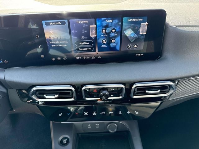- Radio: AM/FM w/RDS/MP3 -inc: 4 speakers, 12.3" NissanConnect multimedia center display, Bluetooth hands-free phone system, streaming audio via Bluetooth, hands-free text messaging assistant, Siri Eyes Free, Google Assistant voice recognition, wireless Apple CarPlay and Android Auto and (2) front USB connection port (type C)