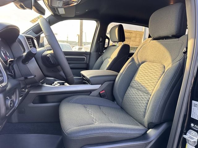 This vehicle comes with the following features and options:Bed Utility Group (Exterior 115V AC Outlet, MOPAR 4 Adjustable Cargo Tie-Down Hooks, and Pick-Up Box Lighting), Big Horn Level 1 Equipment Group (115V Auxiliary Power Outlet, 3 Rear Seat Head Restraints, 4 Way Front Headrests, 400W Inverter, Auto Power-Folding Mirrors, Auto-Dimming Exterior Driver Mirror, Auto-Dimming Rear-View Mirror, Black Exterior Mirrors, Black Premium Power Mirrors, Body Color Fender Flares, Bucket Seats, Center Console Parts Module, Convex Wide-Angle Exterior Mirror Insert, Deluxe Cloth Bucket Seats, Exterior Mirrors Courtesy Lamps, Front Seat Back Map Pockets, Full Length Floor Console, Glove Box Lamp, Heated Front Seats, Heated Steering Wheel, Leather Wrapped Steering Wheel, Manual Adjust 4-Way Front Passenger Seat, Power 2-Way Driver Lumbar Adjust, Power Adjust 8-Way Driver Seat, Power Adjustable Pedals, Rear 60/40 Folding Seat, Rear Center Armrest, Rear Power Sliding Window, Rear Window Defroster, SiriusXM Radio Service, SiriusXM Satellite Radio, Steering Wheel Mounted Audio Controls, and Universal Garage Door Opener), Quick Order Package 27Z Big Horn, 33 Gallon Fuel Tank, 4-Wheel Disc Brakes, 48V Belt Starter Generator, 4G LTE Wi-Fi Hot Spot, 6 Speakers, ABS brakes, Air Conditioning, Alloy wheels, AM/FM radio, Apple CarPlay, Apple CarPlay/Android Auto, Auto High-beam Headlights, Brake assist, Bumpers: chrome, Cloth Bucket Seats, Compass, Connectivity - US/Canada, Delay-off headlights, Driver door bin, Dual front impact airbags, Dual front side impact airbags, Electronic Stability Control, Front anti-roll bar, Front Bucket Seats, Front Center Armrest w/Storage, Front fog lights, Front reading lights, Front wheel independent suspension, Fully automatic headlights, Google Android Auto, GPS Antenna Input, Heated door mirrors, Illuminated entry, Integrated Center Stack Radio, Low tire pressure warning, Manual Adjust 4-Way Driver Seat, Manual Folding Exterior Mirrors, MyFlexCare Service Plan, Occupant sensing airbag, Outside temperature display, Overhead airbag, Overhead console, Panic alarm, ParkView Rear Back-Up Camera, Passenger door bin, Passenger vanity mirror, Power door mirrors, Power steering, Power windows, Radio data system, RAM Grille Badge - Chrome, Rear anti-roll bar, Rear step bumper, Remote keyless entry, Speed control, Supplier Part Tracking (J-1), Tachometer, Telescoping steering wheel, Tilt steering wheel, Traction control, Trailer Brake Control, Trip computer, USB Host Flip, Variably intermittent wipers, Voltmeter, and Wheels: 18 x 8 Cast-Aluminum Painted.