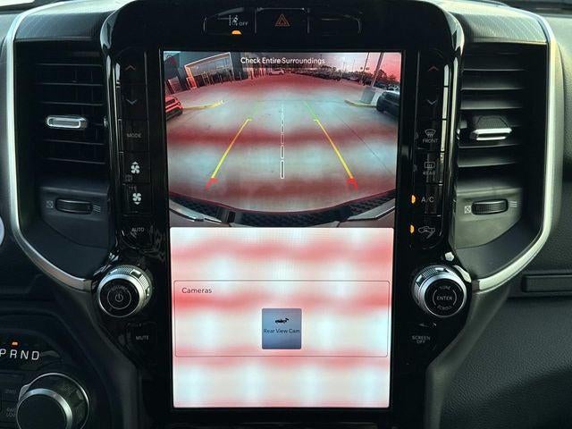 This vehicle comes with the following features and options:Big Horn Level 2 Equipment Group (115V Auxiliary Power Outlet, 115V Auxiliary Rear Power Outlet, 12 Touchscreen Display, 2nd Row in Floor Storage Bins, 3 Rear Seat Head Restraints, 4 Way Front Headrests, 400W Inverter, 4G LTE Wi-Fi Hot Spot, 9 Amplified Speakers with Subwoofer, Air Conditioning ATC with Dual Zone Control, Apple CarPlay, Auto Power-Folding Mirrors, Auto-Dimming Exterior Driver Mirror, Auto-Dimming Rear-View Mirror, Black Exterior Mirrors, Black Premium Power Mirrors, Body Color Fender Flares, Bucket Seats, Center Console Parts Module, Cluster 7.0 TFT Color Display, Configurable Drive Mode, Connected Travel and Traffic Services, Connectivity - US/Canada, Convex Wide-Angle Exterior Mirror Insert, Deluxe Cloth Bucket Seats, Disassociated Touchscreen Display, Exterior Mirrors Courtesy Lamps, Exterior Mirrors with Heating Element, Exterior Mirrors with Supplemental Signals, Front Seat Back Map Pockets, Full Length Floor Console, Global Telematics Box Module, Glove Box Lamp, Google Android Auto, GPS Antenna Input, GPS Navigation, HD Radio, Heated Front Seats, Heated Steering Wheel, Integrated Center Stack Radio, Integrated Voice Command with Bluetooth®, Leather Wrapped Steering Wheel, LED Dome Lamp with on/Off Switch, LED Footwell Lighting, Manual Adjust 4-Way Front Passenger Seat, Media Hub with 2 Charge Only USBs, Overhead LED Lamps, Power 2-Way Driver Lumbar Adjust, Power Adjust 8-Way Driver Seat, Power Adjustable Pedals, Premium Overhead Console, Radio: Uconnect 5 Navigation with 12.0 Display, Rear 60/40 Folding Seat, Rear Center Armrest, Rear Power Sliding Window, Rear Window Defroster, Remote Tailgate Release, Security Alarm, SiriusXM Radio Service, SiriusXM with 360L, Steering Wheel Mounted Audio Controls, Sun Visors with Illuminated Vanity Mirrors, Universal Garage Door Opener, and USB Host Flip), Quick Order Package 27Z Big Horn, Sport Appearance Package (Black Interior Accents, Body Color Door Handles, Body Color Front Bumper, Body Color Rear Bumper with Step Pads, Body Color Tailgate Handle, Grille Surround 1 Body Color Texture 1 Black, and RAM Grille Badge - Chrome), 4-Wheel Disc Brakes, 48V Belt Starter Generator, 6 Speakers, ABS brakes, Air Conditioning, Alloy wheels, AM/FM radio, Apple CarPlay/Android Auto, Auto High-beam Headlights, Brake assist, Bumpers: chrome, Cloth Bucket Seats, Compass, Delay-off headlights, Driver door bin, Dual front impact airbags, Dual front side impact airbags, Electronic Stability Control, Front anti-roll bar, Front Bucket Seats, Front Center Armrest w/Storage, Front fog lights, Front reading lights, Front wheel independent suspension, Fully automatic headlights, Heated door mirrors, Illuminated entry, Low tire pressure warning, Manual Adjust 4-Way Driver Seat, Manual Folding Exterior Mirrors, MOPAR Front and Rear Rubber Floor Mats, MyFlexCare Service Plan, Occupant sensing airbag, Outside temperature display, Overhead airbag, Overhead console, Panic alarm, ParkView Rear Back-Up Camera, Passenger door bin, Passenger vanity mirror, Power door mirrors, Power steering, Power windows, Radio data system, Radio: Uconnect 5 W with 8.4 Display, Rear anti-roll bar, Rear step bumper, Remote keyless entry, Speed control, Supplier Part Tracking (J-1), Tachometer, Telescoping steering wheel, Tilt steering wheel, Traction control, Trip computer, Variably intermittent wipers, and Voltmeter.