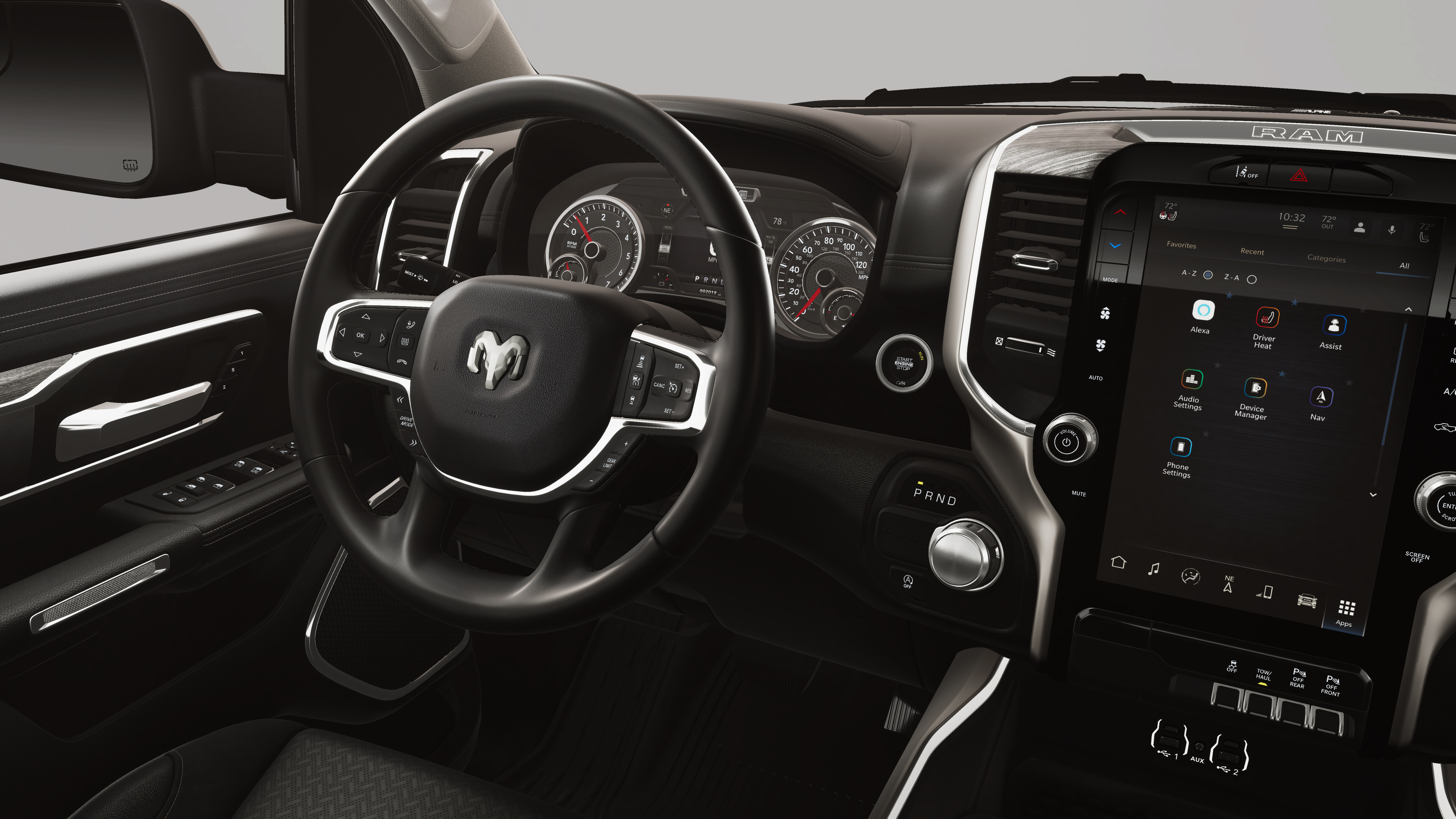 This vehicle comes with the following features and options:Quick Order Package 21H Laramie, Sport Appearance Package (Accent Color Premium Power Mirrors, Auto Power-Folding Mirrors, Auto-Dimming Exterior Driver Mirror, Black Interior Accents, Black Painted Exterior Mirrors Caps, Body Color Front Bumper, Body Color Rear Bumper with Step Pads, Bridgestone Brand Tires, Convex Wide-Angle Exterior Mirror Insert, Exterior Mirrors Courtesy Lamps, Exterior Mirrors with Heating Element, Exterior Mirrors with Memory, Exterior Mirrors with Supplemental Signals, Grille Surround 3 Body Color Tex 2 Black, RAM Grille Badge - Chrome, and Sport Performance Hood), 10 Speakers, 3.21 Rear Axle Ratio, 4-Wheel Disc Brakes, 4G LTE Wi-Fi Hot Spot, ABS brakes, Air Conditioning, Alloy wheels, AM/FM radio: SiriusXM with 360L, Anti-Spin Differential Rear Axle, Apple CarPlay/Android Auto, Audio memory, Auto High-beam Headlights, Auto-dimming door mirrors, Auto-dimming Rear-View mirror, Automatic temperature control, Brake assist, Bumpers: chrome, Chrome Exterior Mirrors, Compass, Connected Travel and Traffic Services, Connectivity - US/Canada, Delay-off headlights, Driver door bin, Driver vanity mirror, Dual front impact airbags, Dual front side impact airbags, Electronic Stability Control, Exterior Parking Camera Rear, Front anti-roll bar, Front Bucket Seats, Front Center Armrest w/Storage, Front dual zone A/C, Front fog lights, Front reading lights, Front wheel independent suspension, Fully automatic headlights, Garage door transmitter, GPS Navigation, Heated door mirrors, Heated front seats, Heated rear seats, Heated steering wheel, Illuminated entry, Integrated Center Stack Radio, Integrated Voice Command with Bluetooth®, Leather steering wheel, Leather Trimmed Bucket Seats, Low tire pressure warning, Memory seat, MOPAR Front and Rear Rubber Floor Mats, MyFlexCare Service Plan, Navigation System, Occupant sensing airbag, Outside temperature display, Overhead airbag, Overhead console, Panic alarm, Passenger door bin, Passenger vanity mirror, Power door mirrors, Power driver seat, Power passenger seat, Power steering, Power windows, Radio data system, Radio: Uconnect 5 Navigation with 12.0 Display, Rear anti-roll bar, Rear reading lights, Rear seat center armrest, Rear step bumper, Remote keyless entry, Security system, SiriusXM Radio Service, SiriusXM with 360L, Speed control, Split folding rear seat, Steering wheel mounted audio controls, Tachometer, Telescoping steering wheel, Tilt steering wheel, Traction control, Trip computer, Turn signal indicator mirrors, USB Host Flip, Variably intermittent wipers, Ventilated front seats, Voltmeter, and Wheels: 20 x 9 Premium Paint/Polish.