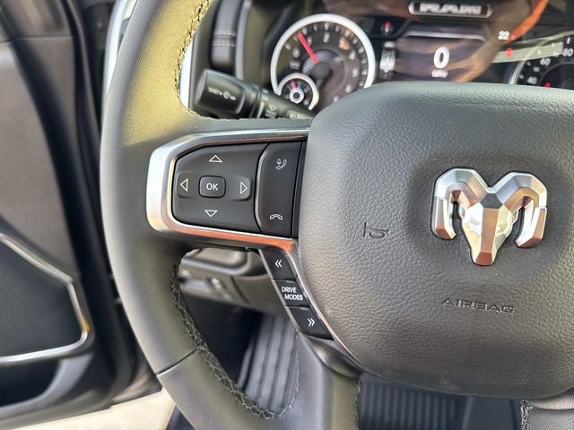 This vehicle comes with the following features and options:Bed Utility Group (Exterior 115V AC Outlet, MOPAR 4 Adjustable Cargo Tie-Down Hooks, and MOPAR Spray in Bedliner), Laramie Level 1 Equipment Group (Rain Sensitive Windshield Wipers and Remote Tailgate Release), Quick Order Package 21H Laramie, Sport Appearance Package (Accent Color Premium Power Mirrors, Auto Power-Folding Mirrors, Auto-Dimming Exterior Driver Mirror, Black Interior Accents, Black Painted Exterior Mirrors Caps, Body Color Front Bumper, Body Color Rear Bumper with Step Pads, Bridgestone Brand Tires, Convex Wide-Angle Exterior Mirror Insert, Exterior Mirrors Courtesy Lamps, Exterior Mirrors with Heating Element, Exterior Mirrors with Memory, Exterior Mirrors with Supplemental Signals, Grille Surround 3 Body Color Tex 2 Black, RAM Grille Badge - Chrome, and Sport Performance Hood), 10 Speakers, 3.21 Rear Axle Ratio, 4-Wheel Disc Brakes, 4G LTE Wi-Fi Hot Spot, ABS brakes, Adjustable pedals, Air Conditioning, Alloy wheels, AM/FM radio: SiriusXM with 360L, Anti-Spin Differential Rear Axle, Apple CarPlay/Android Auto, Audio memory, Auto High-beam Headlights, Auto-dimming door mirrors, Auto-dimming Rear-View mirror, Automatic temperature control, Brake assist, Bumpers: chrome, Chrome Exterior Mirrors, Compass, Connected Travel and Traffic Services, Connectivity - US/Canada, Delay-off headlights, Driver door bin, Driver vanity mirror, Dual front impact airbags, Dual front side impact airbags, Electronic Stability Control, Exterior Parking Camera Rear, Front anti-roll bar, Front Bucket Seats, Front Center Armrest w/Storage, Front dual zone A/C, Front fog lights, Front reading lights, Front wheel independent suspension, Fully automatic headlights, Garage door transmitter, GPS Navigation, Heated door mirrors, Heated front seats, Heated rear seats, Heated steering wheel, Illuminated entry, Integrated Center Stack Radio, Integrated Voice Command with Bluetooth®, Leather steering wheel, Leather Trimmed Bucket Seats, Low tire pressure warning, Memory seat, MOPAR Front and Rear Rubber Floor Mats, MyFlexCare Service Plan, Navigation System, Occupant sensing airbag, Outside temperature display, Overhead airbag, Overhead console, Panic alarm, Passenger door bin, Passenger vanity mirror, Pedal memory, Power door mirrors, Power driver seat, Power passenger seat, Power steering, Power windows, Radio data system, Radio: Uconnect 5 Navigation with 12.0 Display, Rear anti-roll bar, Rear reading lights, Rear seat center armrest, Rear step bumper, Remote keyless entry, Security system, SiriusXM Radio Service, SiriusXM with 360L, Speed control, Split folding rear seat, Steering wheel mounted audio controls, Tachometer, Telescoping steering wheel, Tilt steering wheel, Traction control, Trip computer, Turn signal indicator mirrors, USB Host Flip, Variably intermittent wipers, Ventilated front seats, Voltmeter, and Wheels: 20 x 9 Premium Paint/Polish.