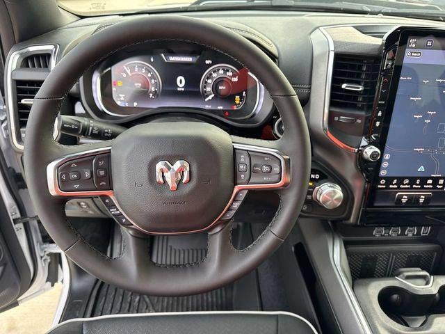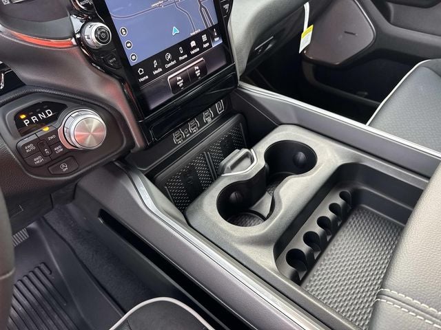 This vehicle comes with the following features and options:Bed Utility Group (Exterior 115V AC Outlet, MOPAR 4 Adjustable Cargo Tie-Down Hooks, and MOPAR Spray in Bedliner), Laramie Level 2 Equipment Group (14.4 Touchscreen Display, 4G LTE Wi-Fi Hot Spot, Cluster 12 TFT Color Display, Connected Travel and Traffic Services, Connectivity - US/Canada, Front Passenger Interactive Display, GPS Navigation, Harman/Kardon 19 Speaker Premium Sound, Integrated Center Stack Radio, Integrated Voice Command with Bluetooth®, Power Tailgate, Radio: Uconnect 5 Nav with 14.4 Display, Rain Sensitive Windshield Wipers, SiriusXM Radio Service, SiriusXM with 360L, and USB Host Flip), Quick Order Package 21H Laramie, Sport Appearance Package (Accent Color Premium Power Mirrors, Auto Power-Folding Mirrors, Auto-Dimming Exterior Driver Mirror, Black Interior Accents, Black Painted Exterior Mirrors Caps, Body Color Front Bumper, Body Color Rear Bumper with Step Pads, Bridgestone Brand Tires, Convex Wide-Angle Exterior Mirror Insert, Exterior Mirrors Courtesy Lamps, Exterior Mirrors with Heating Element, Exterior Mirrors with Memory, Exterior Mirrors with Supplemental Signals, Grille Surround 3 Body Color Tex 2 Black, RAM Grille Badge - Chrome, and Sport Performance Hood), 10 Speakers, 3.55 Rear Axle Ratio, 4-Wheel Disc Brakes, ABS brakes, Active Noise Control System, Adjustable pedals, Air Conditioning, Alloy wheels, AM/FM radio: SiriusXM with 360L, Anti-Spin Differential Rear Axle, Apple CarPlay/Android Auto, Audio memory, Auto High-beam Headlights, Auto-dimming door mirrors, Auto-dimming Rear-View mirror, Automatic temperature control, Brake assist, Bumpers: chrome, Chrome Exterior Mirrors, Compass, Delay-off headlights, Driver door bin, Driver vanity mirror, Dual front impact airbags, Dual front side impact airbags, Electronic Stability Control, Front anti-roll bar, Front Bucket Seats, Front Center Armrest w/Storage, Front dual zone A/C, Front fog lights, Front reading lights, Front wheel independent suspension, Fully automatic headlights, Garage door transmitter, Heated door mirrors, Heated front seats, Heated rear seats, Heated steering wheel, Illuminated entry, Leather steering wheel, Leather Trimmed Bucket Seats, Low tire pressure warning, Memory seat, MOPAR Front and Rear Rubber Floor Mats, MyFlexCare Service Plan, Navigation System, Occupant sensing airbag, Off-Road Information Pages, Outside temperature display, Overhead airbag, Overhead console, Panic alarm, ParkView Rear Back-Up Camera, Passenger door bin, Passenger vanity mirror, Pedal memory, Power door mirrors, Power driver seat, Power passenger seat, Power steering, Power windows, Radio data system, Radio: Uconnect 5 Navigation with 12.0 Display, Rear anti-roll bar, Rear reading lights, Rear seat center armrest, Rear step bumper, Remote keyless entry, Security system, Speed control, Split folding rear seat, Steering wheel mounted audio controls, Tachometer, Telescoping steering wheel, Tilt steering wheel, Traction control, Trip computer, Turn signal indicator mirrors, Variably intermittent wipers, Ventilated front seats, Voltmeter, and Wheels: 20 x 9 Premium Paint/Polish.