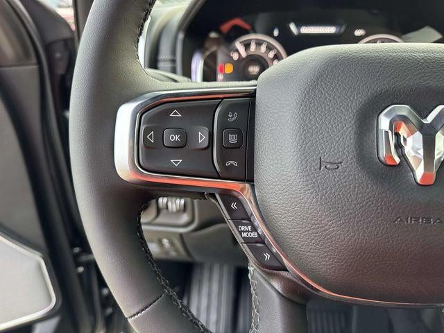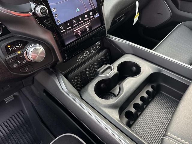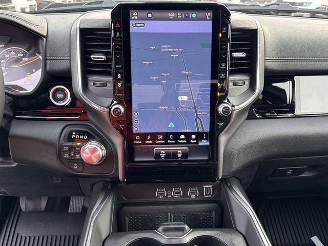 This vehicle comes with the following features and options:Bed Utility Group (Exterior 115V AC Outlet, MOPAR 4 Adjustable Cargo Tie-Down Hooks, and MOPAR Spray in Bedliner), Laramie Level 2 Equipment Group (14.4 Touchscreen Display, 4G LTE Wi-Fi Hot Spot, Cluster 12 TFT Color Display, Connected Travel and Traffic Services, Connectivity - US/Canada, Front Passenger Interactive Display, GPS Navigation, Harman/Kardon 19 Speaker Premium Sound, Integrated Center Stack Radio, Integrated Voice Command with Bluetooth®, Power Tailgate, Radio: Uconnect 5 Nav with 14.4 Display, Rain Sensitive Windshield Wipers, SiriusXM Radio Service, SiriusXM with 360L, and USB Host Flip), Quick Order Package 21H Laramie, Sport Appearance Package (Accent Color Premium Power Mirrors, Auto Power-Folding Mirrors, Auto-Dimming Exterior Driver Mirror, Black Interior Accents, Black Painted Exterior Mirrors Caps, Body Color Front Bumper, Body Color Rear Bumper with Step Pads, Bridgestone Brand Tires, Convex Wide-Angle Exterior Mirror Insert, Exterior Mirrors Courtesy Lamps, Exterior Mirrors with Heating Element, Exterior Mirrors with Memory, Exterior Mirrors with Supplemental Signals, Grille Surround 3 Body Color Tex 2 Black, RAM Grille Badge - Chrome, and Sport Performance Hood), 10 Speakers, 3.55 Rear Axle Ratio, 4-Wheel Disc Brakes, ABS brakes, Active Noise Control System, Adjustable pedals, Air Conditioning, Alloy wheels, AM/FM radio: SiriusXM with 360L, Anti-Spin Differential Rear Axle, Apple CarPlay/Android Auto, Audio memory, Auto High-beam Headlights, Auto-dimming door mirrors, Auto-dimming Rear-View mirror, Automatic temperature control, Brake assist, Bumpers: chrome, Chrome Exterior Mirrors, Compass, Delay-off headlights, Driver door bin, Driver vanity mirror, Dual front impact airbags, Dual front side impact airbags, Electronic Stability Control, Front anti-roll bar, Front Bucket Seats, Front Center Armrest w/Storage, Front dual zone A/C, Front fog lights, Front reading lights, Front wheel independent suspension, Fully automatic headlights, Garage door transmitter, Heated door mirrors, Heated front seats, Heated rear seats, Heated steering wheel, Illuminated entry, Leather steering wheel, Leather Trimmed Bucket Seats, Low tire pressure warning, Memory seat, MOPAR Front and Rear Rubber Floor Mats, MyFlexCare Service Plan, Navigation System, Occupant sensing airbag, Off-Road Information Pages, Outside temperature display, Overhead airbag, Overhead console, Panic alarm, ParkView Rear Back-Up Camera, Passenger door bin, Passenger vanity mirror, Pedal memory, Power door mirrors, Power driver seat, Power passenger seat, Power steering, Power windows, Radio data system, Radio: Uconnect 5 Navigation with 12.0 Display, Rear anti-roll bar, Rear reading lights, Rear seat center armrest, Rear step bumper, Remote keyless entry, Security system, Speed control, Split folding rear seat, Steering wheel mounted audio controls, Tachometer, Telescoping steering wheel, Tilt steering wheel, Traction control, Trip computer, Turn signal indicator mirrors, Variably intermittent wipers, Ventilated front seats, Voltmeter, and Wheels: 20 x 9 Premium Paint/Polish.