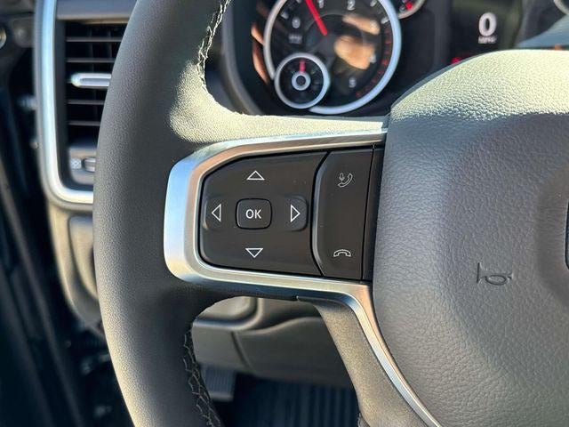 This vehicle comes with the following features and options:Big Horn Level 1 Plus Equipment Group (12 Touchscreen Display, 2 Way Rear Headrest Seat, 2nd Row in Floor Storage Bins, 4 Way Front Headrests, 40/20/40 Split Bench Seat, 4G LTE Wi-Fi Hot Spot, 9 Alpine Speakers with Subwoofer, Air Conditioning ATC with Dual Zone Control, Alexa Built-in, Anti-Spin Differential Rear Axle, Apple CarPlay, Auto Power-Folding Mirrors, Auto-Dimming Rear-View Mirror, Black Exterior Mirrors, Connected Travel and Traffic Services, Connectivity - US/Canada, Disassociated Touchscreen Display, Dual Glove Boxes, Emergency Vehicle Alert System (EVAS), Exterior Mirrors Courtesy Lamps, Exterior Mirrors with Heating Element, Exterior Mirrors with Supplemental Signals, Foam Bottle Insert (door Trim Panel), Folding Flat Load Floor Storage, Footwell Courtesy Lamp, For Details, Visit DriveUconnect.com, For More Info, Call 800-643-2112, Forward and Reverse Utility Lights, Front Armrest with Cupholders, Front Center Seat Cushion Storage, Front Seat Back Map Pockets, Global Telematics Box Module, Glove Box Lamp, Google Android Auto, GPS Antenna Input, GPS Navigation, HD Radio, Integrated Voice Command with Bluetooth®, LED Bed Lighting, Locking Lower Glove Box, Luxury Steering Wheel, Manual Adjust 4-Way Front Passenger Seat, Mirror Running Lights, MOPAR Deployable Bed Step, MOPAR Spray in Bedliner, Off-Road Info Pages, Power 2-Way Driver Lumbar Adjust, Power Adjust 8-Way Driver Seat, Power Adjust Mirrors, Power Heated Folding Telescopic Mirrors, Power Telescoping Mirrors, Power-Adjustable Convex Aux Mirrors, Premium Cloth 40/20/40 Bench Seat, Radio: Uconnect 5 Navigation with 12.0 Display, Rear 60/40 Folding Seat, Rear Dome with on/Off Switch Lamp, Remote Start System, Remote USB Port - Charge Only, Selectable Tire Fill Alert, SiriusXM Radio Service, SiriusXM with 360L, Steering Wheel Mounted Audio Controls, Storage Tray, and Trailer Tow Pages), Heated Seats and Wheel Group (Heated Front Seats and Heated Steering Wheel), Quick Order Package 24Z Big Horn, Sport Appearance Package (Black Interior Accents, Body Color Grille-Surround, Painted Front Bumper, Painted Rear Bumper, and Sport Decal), 20 x 8.0 Polished Aluminum Wheels, 4-Wheel Disc Brakes, 5th Wheel/Gooseneck Towing Prep Group, 6 Speakers, ABS brakes, Air Conditioning, Alloy wheels, AM/FM radio: SiriusXM, Apple CarPlay/Android Auto, Brake assist, Bumpers: chrome, Center Hub, Clearance Lamps, Cloth 40/20/40 Bench Seat, Compass, Dash Pass Thru Wire Circuits, Delay-off headlights, Driver door bin, Dual front impact airbags, Dual front side impact airbags, Electronic Stability Control, Front anti-roll bar, Front Center Armrest w/Storage, Front fog lights, Front reading lights, Fully automatic headlights, Heated door mirrors, Illuminated entry, Instrument Panel Mounted Auxiliary Switches, Low tire pressure warning, Manual Adjust 4-Way Driver Seat, MOPAR Front and Rear Rubber Floor Mats, Occupant sensing airbag, Outside temperature display, Overhead airbag, Overhead console, Panic alarm, ParkView Rear Back-Up Camera, Passenger door bin, Passenger vanity mirror, Power door mirrors, Power steering, Power windows, Radio data system, Radio: Uconnect 5 with 8.4 Display, Rear anti-roll bar, Rear Folding Seat, Rear seat center armrest, Rear step bumper, Rear window defroster, Remote keyless entry, Security system, Speed control, Tachometer, Tilt steering wheel, Traction control, Trip computer, Turn signal indicator mirrors, Variably intermittent wipers, Voltmeter, and Wheels: 18 x 8.0 Polished AluminuM.