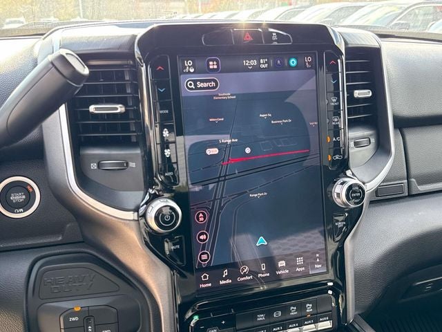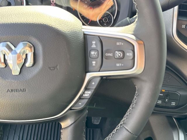 This vehicle comes with the following features and options:Big Horn Level 1 Plus Equipment Group (12 Touchscreen Display, 2 Way Rear Headrest Seat, 2nd Row in Floor Storage Bins, 4 Way Front Headrests, 40/20/40 Split Bench Seat, 4G LTE Wi-Fi Hot Spot, 9 Alpine Speakers with Subwoofer, Air Conditioning ATC with Dual Zone Control, Alexa Built-in, Anti-Spin Differential Rear Axle, Apple CarPlay, Auto Power-Folding Mirrors, Auto-Dimming Rear-View Mirror, Black Exterior Mirrors, Connected Travel and Traffic Services, Connectivity - US/Canada, Disassociated Touchscreen Display, Dual Glove Boxes, Emergency Vehicle Alert System (EVAS), Exterior Mirrors Courtesy Lamps, Exterior Mirrors with Heating Element, Exterior Mirrors with Supplemental Signals, Foam Bottle Insert (door Trim Panel), Folding Flat Load Floor Storage, Footwell Courtesy Lamp, For Details, Visit DriveUconnect.com, For More Info, Call 800-643-2112, Forward and Reverse Utility Lights, Front Armrest with Cupholders, Front Center Seat Cushion Storage, Front Seat Back Map Pockets, Global Telematics Box Module, Glove Box Lamp, Google Android Auto, GPS Antenna Input, GPS Navigation, HD Radio, Integrated Voice Command with Bluetooth®, LED Bed Lighting, Locking Lower Glove Box, Luxury Steering Wheel, Manual Adjust 4-Way Front Passenger Seat, Mirror Running Lights, MOPAR Deployable Bed Step, MOPAR Spray in Bedliner, Off-Road Info Pages, Power 2-Way Driver Lumbar Adjust, Power Adjust 8-Way Driver Seat, Power Adjust Mirrors, Power Heated Folding Telescopic Mirrors, Power Telescoping Mirrors, Power-Adjustable Convex Aux Mirrors, Premium Cloth 40/20/40 Bench Seat, Radio: Uconnect 5 Navigation with 12.0 Display, Rear 60/40 Folding Seat, Rear Dome with on/Off Switch Lamp, Remote Start System, Remote USB Port - Charge Only, Selectable Tire Fill Alert, SiriusXM Radio Service, SiriusXM with 360L, Steering Wheel Mounted Audio Controls, Storage Tray, and Trailer Tow Pages), Heated Seats and Wheel Group (Heated Front Seats and Heated Steering Wheel), Quick Order Package 24Z Big Horn, Sport Appearance Package (Black Interior Accents, Body Color Grille-Surround, Painted Front Bumper, Painted Rear Bumper, and Sport Decal), 20 x 8.0 Polished Aluminum Wheels, 4-Wheel Disc Brakes, 5th Wheel/Gooseneck Towing Prep Group, 6 Speakers, ABS brakes, Air Conditioning, Alloy wheels, AM/FM radio: SiriusXM, Apple CarPlay/Android Auto, Brake assist, Bumpers: chrome, Center Hub, Clearance Lamps, Cloth 40/20/40 Bench Seat, Compass, Dash Pass Thru Wire Circuits, Delay-off headlights, Driver door bin, Dual front impact airbags, Dual front side impact airbags, Electronic Stability Control, Front anti-roll bar, Front Center Armrest w/Storage, Front fog lights, Front reading lights, Fully automatic headlights, Heated door mirrors, Illuminated entry, Instrument Panel Mounted Auxiliary Switches, Low tire pressure warning, Manual Adjust 4-Way Driver Seat, MOPAR Front and Rear Rubber Floor Mats, Occupant sensing airbag, Outside temperature display, Overhead airbag, Overhead console, Panic alarm, ParkView Rear Back-Up Camera, Passenger door bin, Passenger vanity mirror, Power door mirrors, Power steering, Power windows, Radio data system, Radio: Uconnect 5 with 8.4 Display, Rear anti-roll bar, Rear Folding Seat, Rear seat center armrest, Rear step bumper, Rear window defroster, Remote keyless entry, Security system, Speed control, Tachometer, Tilt steering wheel, Traction control, Trip computer, Turn signal indicator mirrors, Variably intermittent wipers, Voltmeter, and Wheels: 18 x 8.0 Polished AluminuM.