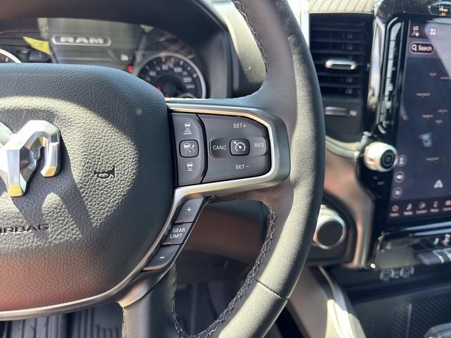 This vehicle comes with the following features and options:Big Horn Level 2 Equipment Group (115V Auxiliary Power Outlet, 115V Auxiliary Rear Power Outlet, 12 Touchscreen Display, 2nd Row in Floor Storage Bins, 3 Rear Seat Head Restraints, 4 Way Front Headrests, 400W Inverter, 4G LTE Wi-Fi Hot Spot, 9 Amplified Speakers with Subwoofer, Air Conditioning ATC with Dual Zone Control, Apple CarPlay, Auto Power-Folding Mirrors, Auto-Dimming Exterior Driver Mirror, Auto-Dimming Rear-View Mirror, Black Exterior Mirrors, Black Premium Power Mirrors, Body Color Fender Flares, Bucket Seats, Center Console Parts Module, Cluster 7.0 TFT Color Display, Configurable Drive Mode, Connected Travel and Traffic Services, Connectivity - US/Canada, Convex Wide-Angle Exterior Mirror Insert, Deluxe Cloth Bucket Seats, Disassociated Touchscreen Display, Exterior Mirrors Courtesy Lamps, Exterior Mirrors with Heating Element, Exterior Mirrors with Supplemental Signals, Front Seat Back Map Pockets, Full Length Floor Console, Global Telematics Box Module, Glove Box Lamp, Google Android Auto, GPS Antenna Input, GPS Navigation, HD Radio, Heated Front Seats, Heated Steering Wheel, Integrated Center Stack Radio, Integrated Voice Command with Bluetooth®, Leather Wrapped Steering Wheel, LED Dome Lamp with on/Off Switch, LED Footwell Lighting, Manual Adjust 4-Way Front Passenger Seat, Media Hub with 2 Charge Only USBs, Overhead LED Lamps, Power 2-Way Driver Lumbar Adjust, Power Adjust 8-Way Driver Seat, Power Adjustable Pedals, Premium Overhead Console, Radio: Uconnect 5 Navigation with 12.0 Display, Rear 60/40 Folding Seat, Rear Center Armrest, Rear Power Sliding Window, Rear Window Defroster, Remote Tailgate Release, Security Alarm, SiriusXM Radio Service, SiriusXM with 360L, Steering Wheel Mounted Audio Controls, Sun Visors with Illuminated Vanity Mirrors, Universal Garage Door Opener, and USB Host Flip), Night Edition (Accent Color Door Handles, Accent Color Premium Power Mirrors, Accent Color Tailgate Handle, Anti-Spin Differential Rear Axle, Black Exterior Truck Badging, Black Headlamp Bezels, Black Interior Accents, Black Painted Exterior Mirrors Caps, Black Tail Lamp Bezels, Body Color Front Bumper, Body Color Rear Bumper with Step Pads, Dual Exhaust with Black Tips, Grille Black Surround Black Mesh, RAM Grille Badge - Black, and Wheels: 20 x 9.0 Aluminum Painted Clad), Quick Order Package 23Z Big Horn, 3.21 Rear Axle Ratio, 4-Wheel Disc Brakes, 48V Belt Starter Generator, 6 Speakers, ABS brakes, Air Conditioning, Alloy wheels, AM/FM radio, Apple CarPlay/Android Auto, Auto High-beam Headlights, Brake assist, Bumpers: chrome, Cloth Bucket Seats, Compass, Delay-off headlights, Driver door bin, Dual front impact airbags, Dual front side impact airbags, Electronic Stability Control, Front anti-roll bar, Front Bucket Seats, Front Center Armrest w/Storage, Front fog lights, Front reading lights, Front wheel independent suspension, Fully automatic headlights, Heated door mirrors, Illuminated entry, Low tire pressure warning, Manual Adjust 4-Way Driver Seat, Manual Folding Exterior Mirrors, MOPAR Front and Rear Rubber Floor Mats, MyFlexCare Service Plan, Occupant sensing airbag, Outside temperature display, Overhead airbag, Overhead console, Panic alarm, ParkView Rear Back-Up Camera, Passenger door bin, Passenger vanity mirror, Power door mirrors, Power steering, Power windows, Radio data system, Radio: Uconnect 5 W with 8.4 Display, RAM Grille Badge - Chrome, Rear anti-roll bar, Rear step bumper, Remote keyless entry, Speed control, Supplier Part Tracking (J-1), Tachometer, Telescoping steering wheel, Tilt steering wheel, Traction control, Trip computer, Variably intermittent wipers, and Voltmeter.