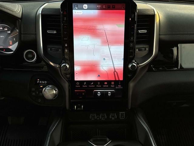 This vehicle comes with the following features and options:Bed Utility Group (Exterior 115V AC Outlet, MOPAR 4 Adjustable Cargo Tie-Down Hooks, and MOPAR Spray in Bedliner), Laramie Level 2 Equipment Group (14.4 Touchscreen Display, 4G LTE Wi-Fi Hot Spot, Cluster 12 TFT Color Display, Connected Travel and Traffic Services, Connectivity - US/Canada, Front Passenger Interactive Display, GPS Navigation, Harman/Kardon 19 Speaker Premium Sound, Integrated Center Stack Radio, Integrated Voice Command with Bluetooth®, Power Tailgate, Radio: Uconnect 5 Nav with 14.4 Display, Rain Sensitive Windshield Wipers, SiriusXM Radio Service, SiriusXM with 360L, and USB Host Flip), Night Edition (Accent Color Door Handles, Accent Color Premium Power Mirrors, Accent Color Tailgate Handle, Anti-Spin Differential Rear Axle, Auto Power-Folding Mirrors, Auto-Dimming Exterior Driver Mirror, Black Exterior Truck Badging, Black Headlamp Bezels, Black Interior Accents, Black Painted Exterior Mirrors Caps, Black Tail Lamp Bezels, Body Color Front Bumper, Body Color Rear Bumper with Step Pads, Convex Wide-Angle Exterior Mirror Insert, Dual Exhaust with Black Tips, Exterior Mirrors Approach Lamps, Exterior Mirrors Courtesy Lamps, Exterior Mirrors with Heating Element, Exterior Mirrors with Memory, Exterior Mirrors with Supplemental Signals, Grille Surround 3 Black Texture 2 Black, Pirelli Brand Tires, Proximity Approach/Departure Lamps, RAM Grille Badge - Black, Sport Performance Hood, and Wheels: 22 x 9 Forged Aluminum), Quick Order Package 27H Laramie, 10 Speakers, 33 Gallon Fuel Tank, 4-Wheel Disc Brakes, ABS brakes, Active Noise Control System, Adjustable pedals, Air Conditioning, Alloy wheels, AM/FM radio: SiriusXM with 360L, Apple CarPlay/Android Auto, Audio memory, Auto High-beam Headlights, Auto-dimming door mirrors, Auto-dimming Rear-View mirror, Automatic temperature control, Brake assist, Bumpers: chrome, Chrome Exterior Mirrors, Compass, Delay-off headlights, Driver door bin, Driver vanity mirror, Dual front impact airbags, Dual front side impact airbags, Electronic Stability Control, Front anti-roll bar, Front Bucket Seats, Front Center Armrest w/Storage, Front dual zone A/C, Front fog lights, Front reading lights, Front wheel independent suspension, Fully automatic headlights, Garage door transmitter, Heated door mirrors, Heated front seats, Heated rear seats, Heated steering wheel, Illuminated entry, Leather steering wheel, Leather Trimmed Bucket Seats, Low tire pressure warning, Memory seat, MOPAR Front and Rear Rubber Floor Mats, MyFlexCare Service Plan, Navigation System, Occupant sensing airbag, Off-Road Information Pages, Outside temperature display, Overhead airbag, Overhead console, Panic alarm, ParkView Rear Back-Up Camera, Passenger door bin, Passenger vanity mirror, Pedal memory, Power Deployable Running Boards, Power door mirrors, Power driver seat, Power passenger seat, Power steering, Power windows, Radio data system, Radio: Uconnect 5 Navigation with 12.0 Display, RAM Grille Badge - Chrome, Rear anti-roll bar, Rear reading lights, Rear seat center armrest, Rear step bumper, Remote keyless entry, Security system, Speed control, Split folding rear seat, Steering wheel mounted audio controls, Tachometer, Telescoping steering wheel, Tilt steering wheel, Traction control, Trailer Brake Control, Trip computer, Turn signal indicator mirrors, Variably intermittent wipers, Ventilated front seats, Voltmeter, and Wheels: 20 x 9 Premium Paint/Polish.