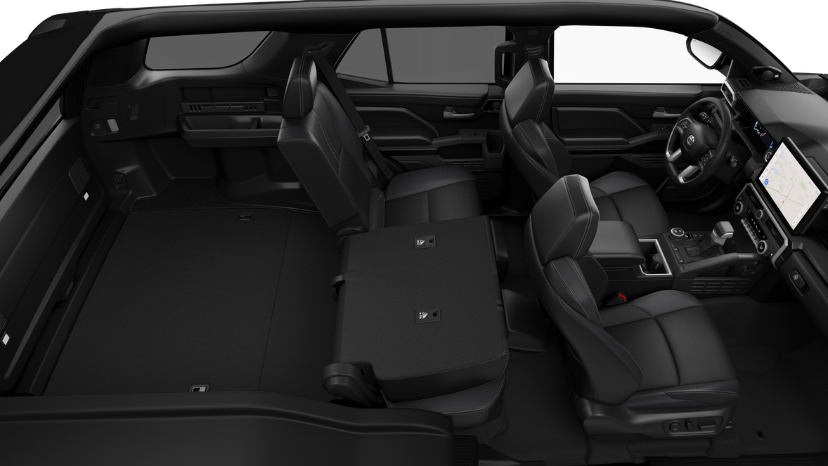- 60/40 split, reclining and tumble-folding second-row seat with center armrest and cup holders