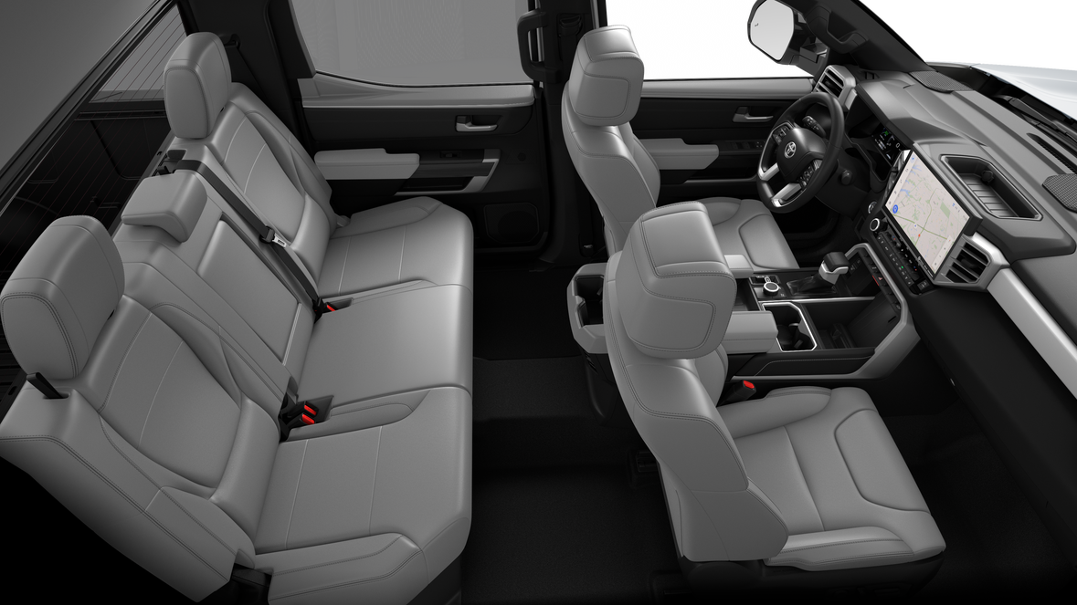 - Chrome "TUNDRA" and "LIMITED" door badges, door handles and window molding; color-keyed mirror caps and tailgate spoiler; gray-painted overfenders