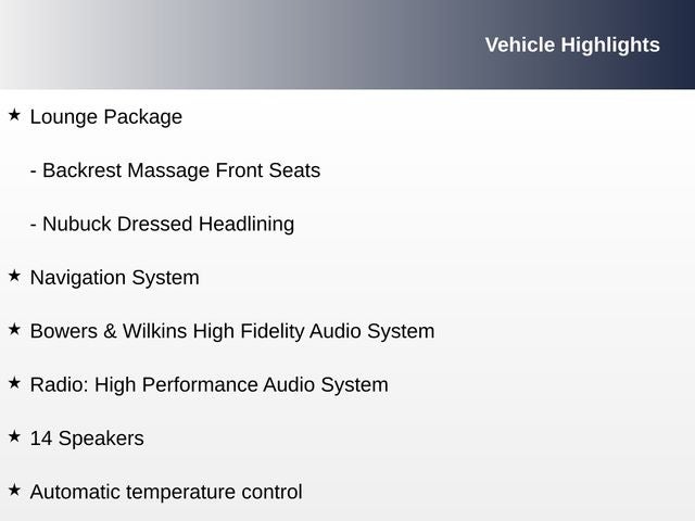 - Radio: High Performance Audio System -inc: 600-watt audio w/14 speakers, 11.2" center display, 12.3" digital driver display, harman/kardon premium sound, 2 front and 2 rear USB-C ports, Bluetooth®, 4-year digital service package including Google built-in (Google maps, Google play store and Google assistant), road side information, Volvo cars app w/remote services, Apple CarPlay, Android Auto, SiriusXM radio w/audio trial subscription and inductive smartphone charging