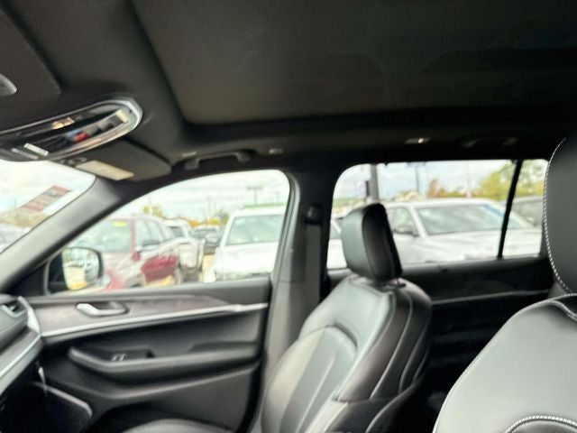 This vehicle comes with the following features and options:Black Appearance Package (Gloss Black Exterior Accents and Wheels: 20 x 8.5 Gloss Black Painted Aluminum), Luxury Tech Group II (2nd Row Manual Window Shades, Auto-Dimming Exterior Driver Mirror, Capri Leatherette w/Axis II Seats, Integrated Off-Road Camera, Intersection Collision Assist System, Memory Steering Column, ParkSense Front/Rear Park Assist w/Stop, Passive Entry - Front/Rear Doors, Liftgate, Power Tilt/Telescope Steering Column, Rain Sensitive Windshield Wipers, Rear Back Up Camera Washer, Rearview Autodim Digital Display Mirror, Surround View Camera System, Ventilated Front Seats, and Wireless Charging Pad), Quick Order Package 23E (DISC), Trailer Tow Package (220 Amp Alternator, 7 & 4 Pin Wiring Harness, Automatic Headlamp Leveling System, Class IV Receiver Hitch, Dual Exhaust Tips, Heavy-Duty Engine Cooling, Rear Load Leveling Suspension, and Trailer Hitch Zoom), 3.45 Rear Axle Ratio, 3rd row seats: split-bench, 4-Wheel Disc Brakes, 506 Watt Amplifier, 6 Speakers, 9 Amplified Speakers w/Subwoofer, ABS brakes, Active Noise Control System, Air Conditioning, Alloy wheels, AM/FM radio: SiriusXM with 360L, Anti-whiplash front head restraints, Audio memory, Auto High-beam Headlights, Automatic temperature control, Brake assist, Bumpers: body-color, Capri Leatherette Seats, Compass, Delay-off headlights, Driver door bin, Driver vanity mirror, Dual front impact airbags, Dual front side impact airbags, Dual-Pane Panoramic Sunroof, Electronic Stability Control, Emergency communication system, Four wheel independent suspension, Front anti-roll bar, Front Bucket Seats, Front Center Armrest w/Storage, Front dual zone A/C, Front fog lights, Front reading lights, Fully automatic headlights, Garage door transmitter, Heated door mirrors, Heated front seats, Heated rear seats, Heated steering wheel, Illuminated entry, Interior Rear Facing Camera, Knee airbag, Low tire pressure warning, Manual Fold Seatbacks, Memory seat, Model Year Tracking, Navigation System, Normal Duty Suspension, Occupant sensing airbag, Outside temperature display, Overhead airbag, Overhead console, Panic alarm, ParkView Rear Back-Up Camera, Passenger door bin, Passenger vanity mirror, Power door mirrors, Power driver seat, Power Liftgate, Power passenger seat, Power steering, Power windows, Radio data system, Radio: Uconnect 5 Nav w/10.1 Display, Rear air conditioning, Rear anti-roll bar, Rear reading lights, Rear window defroster, Rear window wiper, Reclining 3rd row seat, Remote keyless entry, Security system, Speed control, Speed-Sensitive Wipers, Split folding rear seat, Spoiler, Steering wheel mounted audio controls, Tachometer, Telescoping steering wheel, Tilt steering wheel, Traction control, Trip computer, Turn signal indicator mirrors, Variably intermittent wipers, Voltmeter, and Wheels: 18 x 8.0 Polished/Painted Aluminum.