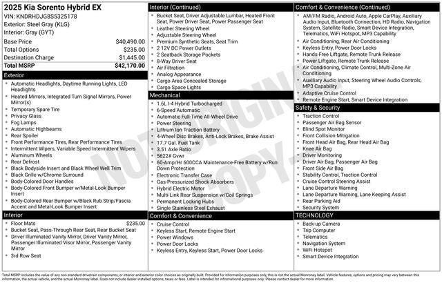 EX AWD 6-Speed Automatic 1.6L Turbo GDI 4-Cylinder Price includes: $3500 - KFA Dealer Choice Program: $3500 discount and 5.25% APR for 36 months. $30.08 per $1000 financed. Available to well qualified buyers who finance through Kia Finance America. 506. Exp. 02/02/2026