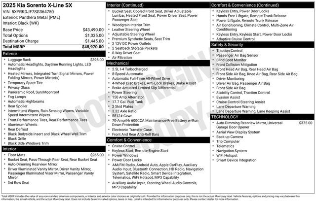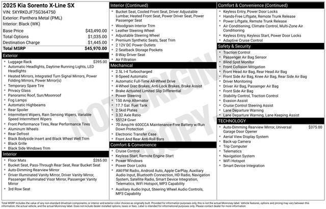 X-Line SX AWD 8 Speed Dual Clutch 2.5L I4 DGI Turbocharged DOHC 16V LEV3-SULEV30 281hp Price includes: $1000 - Sticker Sales Event Retail Bonus Cash. Exp. 01/02/2026 $2500 - KFA Dealer Choice Program: $2500 discount and 5.25% APR for 36 months. $30.08 per $1000 financed. Available to well qualified buyers who finance through Kia Finance America. 506. Exp. 01/02/2026