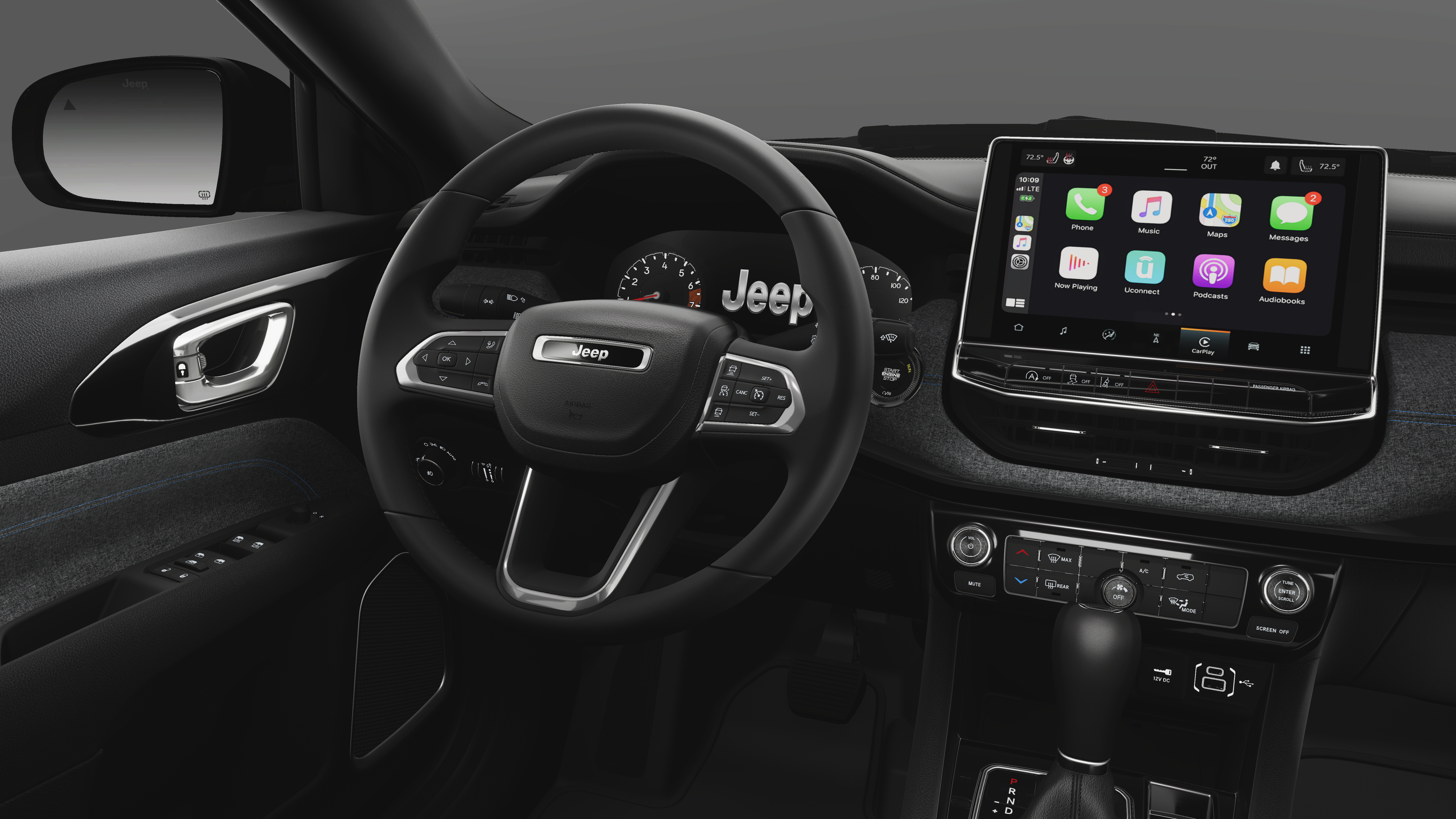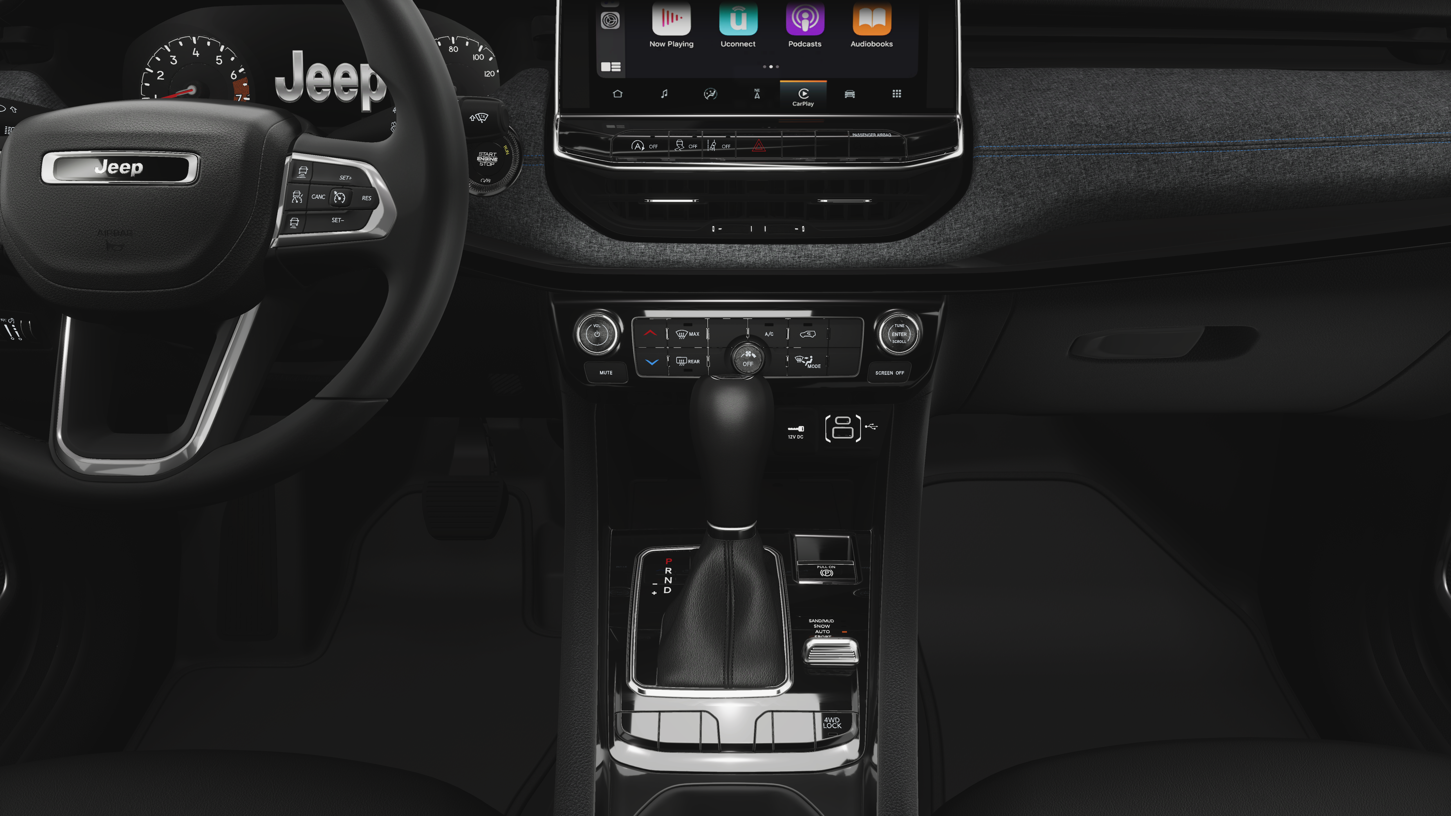 This vehicle comes with the following features and options:Quick Order Package 29N Altitude (10.1 Touchscreen Display, Altitude Special Edition, Black Day Light Opening Moldings, Gloss Black Surround/Neutral Gray Rings, Neutral Gray Exterior Badging, Piano Black Interior Accents, Sliding Sun Visors with Illuminated Mirrors, and Wheels: 18 x 7 Gloss Black Painted Aluminum), 4WD, 17 x 7 Aluminum Wheels, 3.73 Final Drive Ratio, 4-Wheel Disc Brakes, 4G LTE Wi-Fi Hot Spot, 6 Speakers, ABS brakes, Air Conditioning, AM/FM radio: SiriusXM, Auto High-beam Headlights, Automatic temperature control, Bluetooth® Handsfree Phone and Audio, Brake assist, Bumpers: body-color, Compass, Delay-off headlights, Driver door bin, Driver vanity mirror, Dual front impact airbags, Dual front side impact airbags, Electronic Stability Control, Emergency communication system: SiriusXM Guardian, Four wheel independent suspension, Front anti-roll bar, Front Bucket Seats, Front Center Armrest w/Storage, Front fog lights, Front reading lights, Fully automatic headlights, Global Telematics Box Module, Heated door mirrors, Heated front seats, Heated steering wheel, Illuminated entry, Knee airbag, Leather Shift Knob, Leather steering wheel, Low tire pressure warning, MyFlexCare Service Plan, Occupant sensing airbag, Outside temperature display, Overhead airbag, Overhead console, Panic alarm, ParkView Rear Back-Up Camera, Passenger door bin, Passenger vanity mirror, Power door mirrors, Power steering, Power windows, Premium audio system: UConnect 5, Premium Cloth/Vinyl Bucket Seats, Radio: Uconnect 5 with 8.4 Display, Rear anti-roll bar, Rear seat center armrest, Rear window defroster, Rear window wiper, Remote keyless entry, Security system, SiriusXM Satellite Radio, Speed control, Split folding rear seat, Spoiler, Steering wheel mounted audio controls, Tachometer, Telescoping steering wheel, Tilt steering wheel, Traction control, Trip computer, and Variably intermittent wipers.