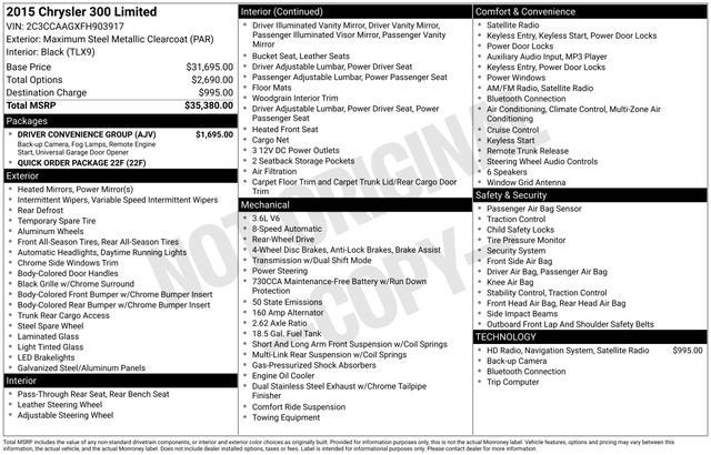 This 2015 Chrysler 300 Limited is the perfect blend of style, performance, and technology. With its impressive features and well-maintained condition, it's an exceptional value that's sure to impress. We invite you to experience the exceptional craftsmanship and driving dynamics of this remarkable sedan. Visit our showroom today and let us demonstrate why this Chrysler 300 is the perfect choice for your next vehicle.