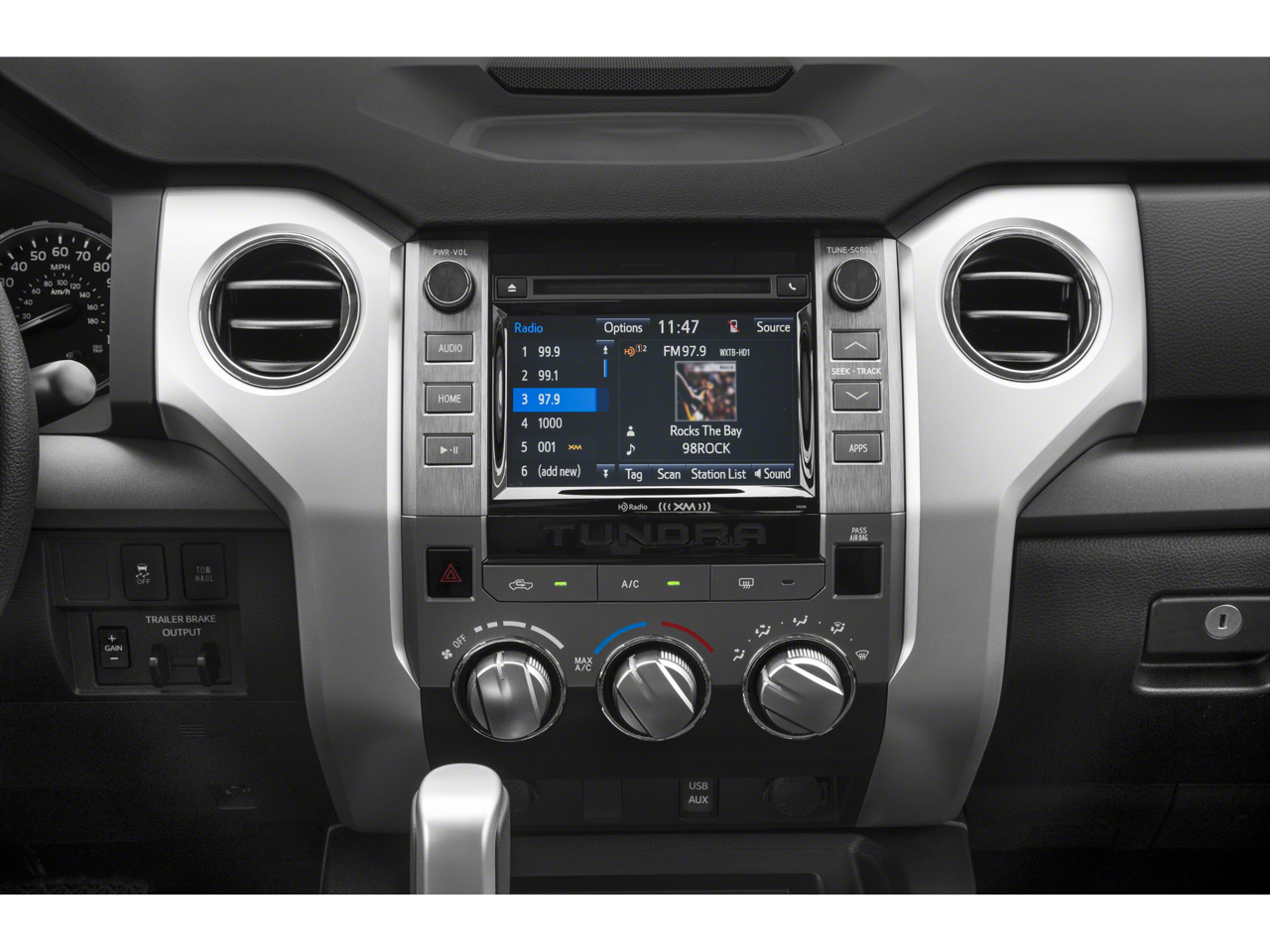 - Radio: Entune Audio Display AM/FM/HD w/CD Player -inc: connected navigation Scout GPS Link app, MP3/WMA playback capability, 6 speakers, high-resolution 7" touch-screen display, auxiliary audio jack, USB 2.0 port, iPod connectivity and control, HD traffic and weather in major metro areas, Bluetooth® hands-free phone capability, phone book access, advanced voice recognition and music streaming, Siri Eyes Free and integrated backup camera display