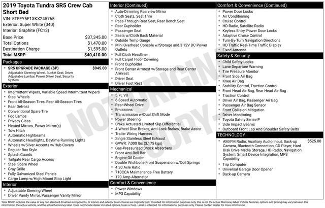 Experience the rugged capability and refined comfort of the 2019 Toyota Tundra SR5 CrewMax. This versatile truck is ready to elevate your driving experience and take on any adventure. Visit our showroom today to explore this exceptional vehicle and discover how it can meet your needs. We're confident you'll be impressed by its impressive performance, thoughtful design, and exceptional value.