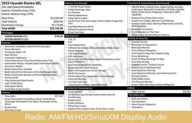 - Radio: AM/FM/HD/SiriusXM Display Audio -inc: 8" high resolution touch screen display, 6 speakers, wireless Apple CarPlay and Android Auto, Bluetooth® hands-free phone system w/voice recognition, USB ports, speed-sensitive automatic volume control and Blue Link connected car system