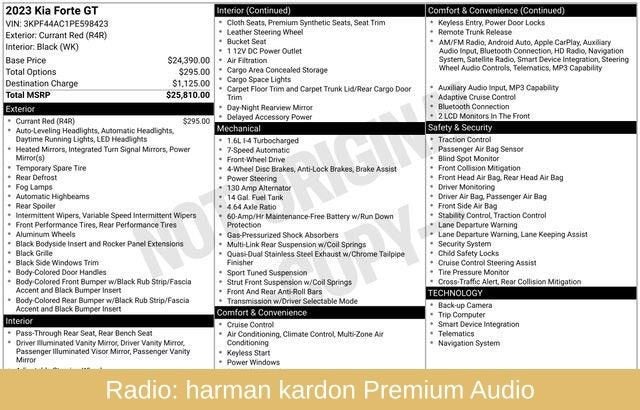 - Radio: 10.25" Display Audio -inc: 6 speakers, 10.25" touch screen, navigation, Kia Connect, HD radio, Apple CarPlay, Android Auto, Bluetooth® hands-free and USB input