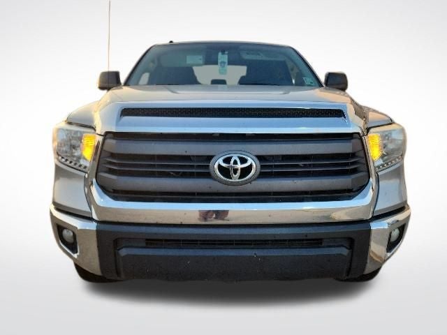 Silver Sky Metallic 2014 Toyota Tundra SR5 CrewMax 4WD 6-Speed Automatic Electronic with Overdrive i-Force 5.7L V8 Flex Fuel DOHC 32V LEV WE DELIVER ANYWHERE, 4WD, Black/Brown Leather, 18 x 8J Styled Steel Wheels, 3-Passenger Front Bench Seat, 4-Wheel Disc Brakes, 4.30 Axle Ratio, 6 Speakers, ABS brakes, Air Conditioning, AM/FM radio: SiriusXM, Brake assist, CD player, Compass, Driver door bin, Driver vanity mirror, Dual front impact airbags, Dual front side impact airbags, Electronic Stability Control, Exterior Parking Camera Rear, Fabric Seat Trim, Front anti-roll bar, Front Bucket Seats, Front Center Armrest w/Storage, Front fog lights, Front reading lights, Front wheel independent suspension, Heated door mirrors, Illuminated entry, Knee airbag, Low tire pressure warning, Occupant sensing airbag, Outside temperature display, Overhead airbag, Overhead console, Panic alarm, Passenger door bin, Passenger vanity mirror, Power door mirrors, Power steering, Power windows, Radio: Entune AM/FM/HD w/CD Player, Radio: Entune Audio Display AM/FM/HD w/CD Player, Rear reading lights, Rear seat center armrest, Rear step bumper, Rear window defroster, Remote keyless entry, Speed control, Speed-sensing steering, Split folding rear seat, Tachometer, Tilt steering wheel, Traction control, Variably intermittent wipers, Voltmeter, 4WD, Black/Brown Leather.