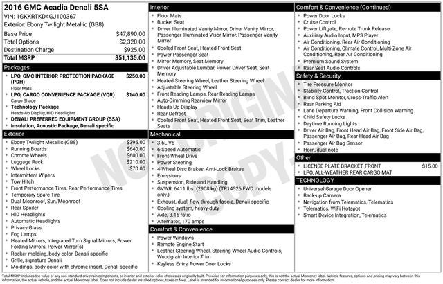 See dealer for details. Tax, tag, title, license, convenience charge ($23) and dealer documentation fee ($425) are extra (unless itemized above).